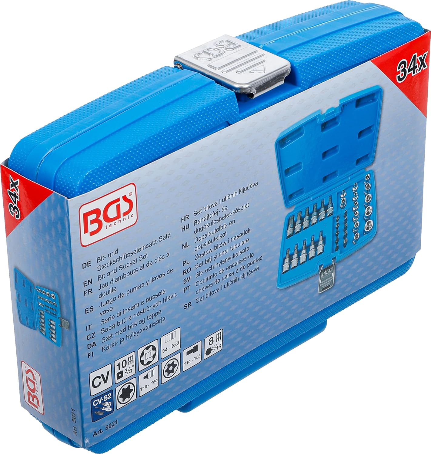 - 10 Bits, Antrieb 5/16", T-Profil (für Torx) mit Bohrung: T10 - T55