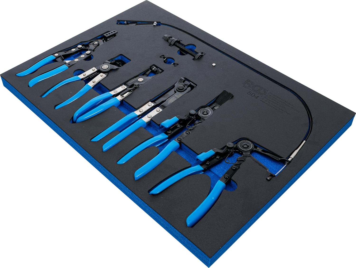 - Art. 8600 Federbandschellen-Zange: speziell gefertigt für Raumspar-Federbandschellen, Ratschenmechanik zum Offenhalten der Schelle, besonders geeignet für neue Federbandschellen an VAG Kraftstoffleitungen