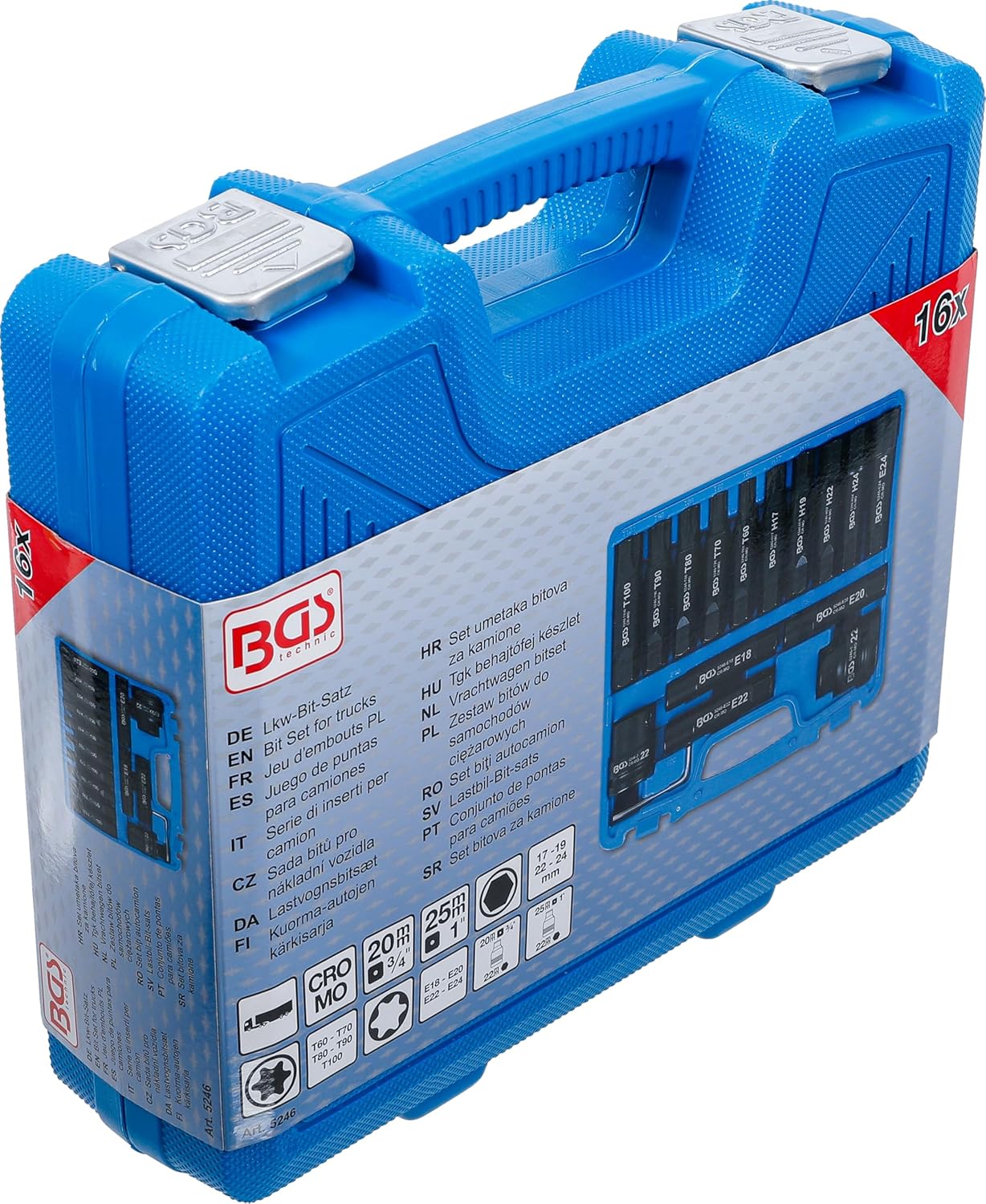 - 4 x Bits, Antrieb Aussensechskant 22 mm, Abtrieb Innensechskant: 17 -19 - 22 - 24 mm
