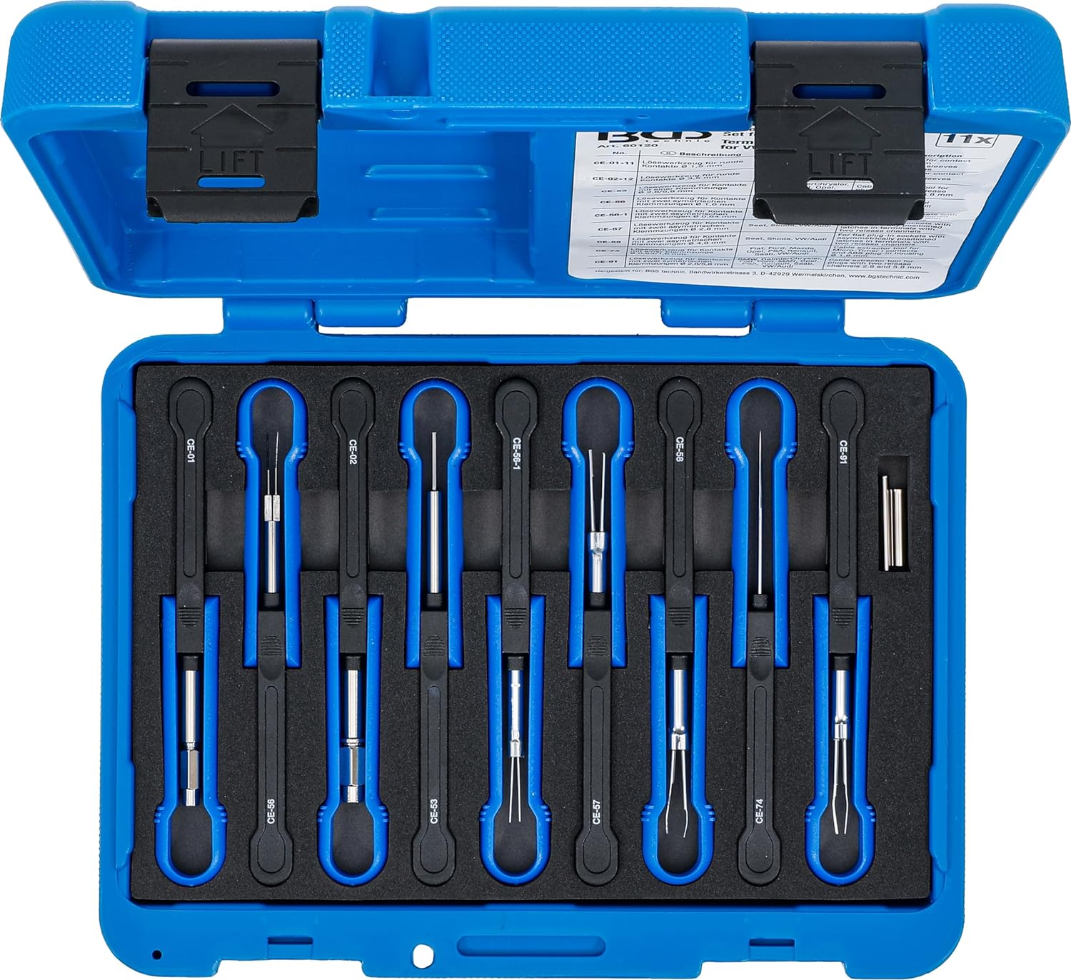 - zum zerstörungsfreien Entriegeln der Steckkontakte an der Fahrzeugelektronik (ABS, Klima, Sensoren, etc.)