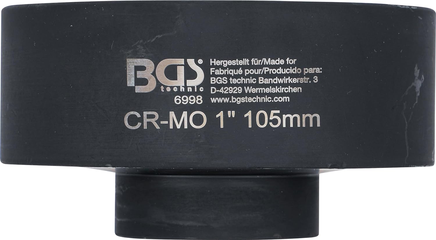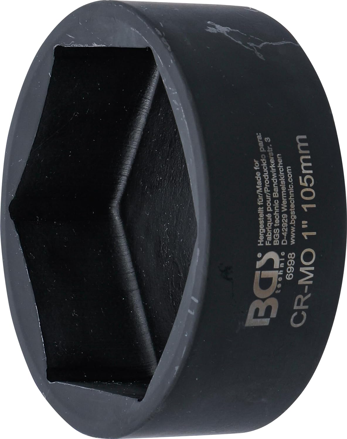 - Abtriebsprofil: Sechskant | Antriebsprofil: Innenvierkant | Antriebsprofilgrösse, metrisch: 25 mm | Antriebsprofilgrösse, imperial: 1" | Schlüsselweite: 105 mm | Material: Chrom-Molybdän-Stahl | Oberflächenvergütung: phosphatiert