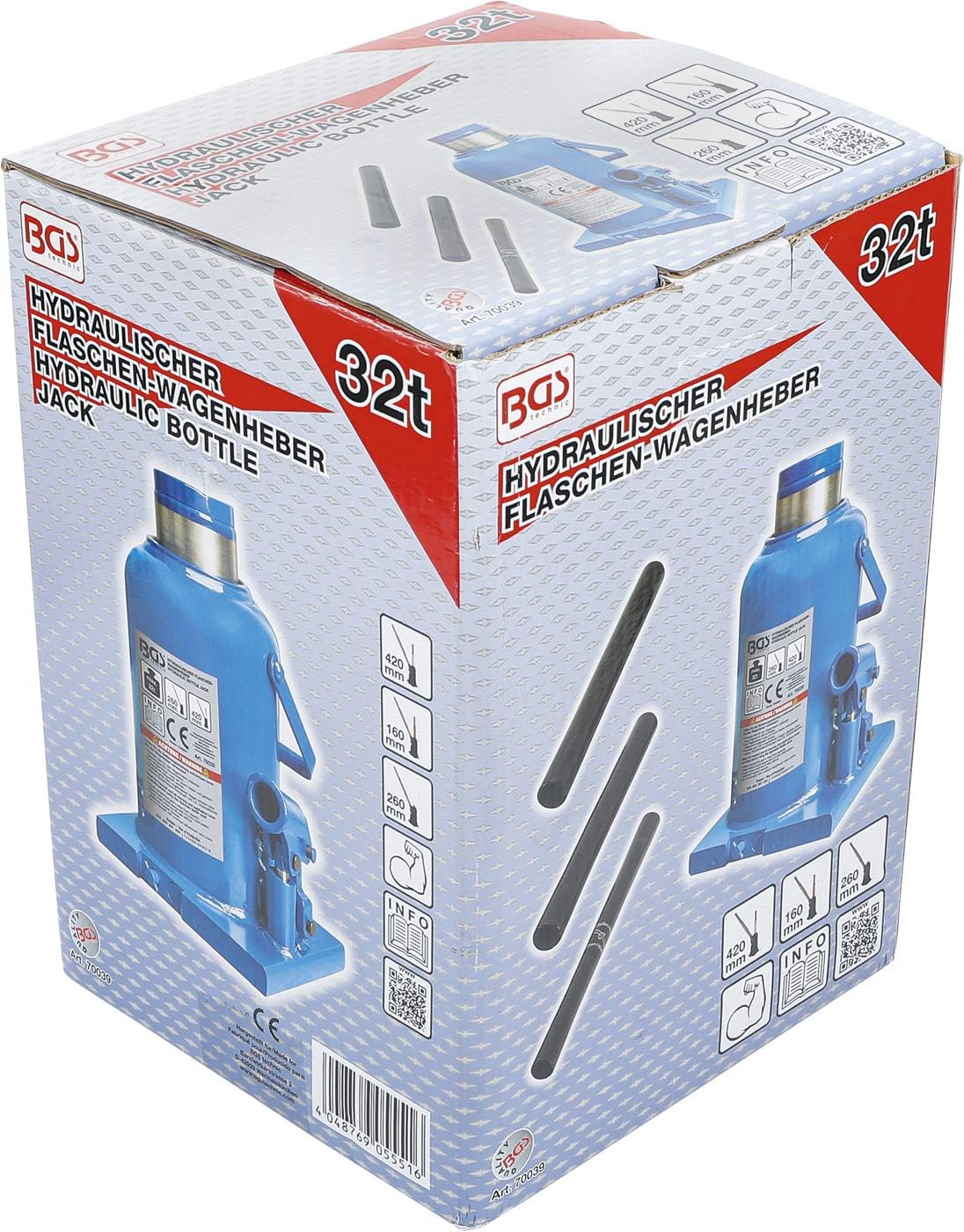 - Tragfähigkeit max.: 32 t | Hubhöhe: 160 mm | Höhe min.: 260 mm | Höhe max.: 420 mm