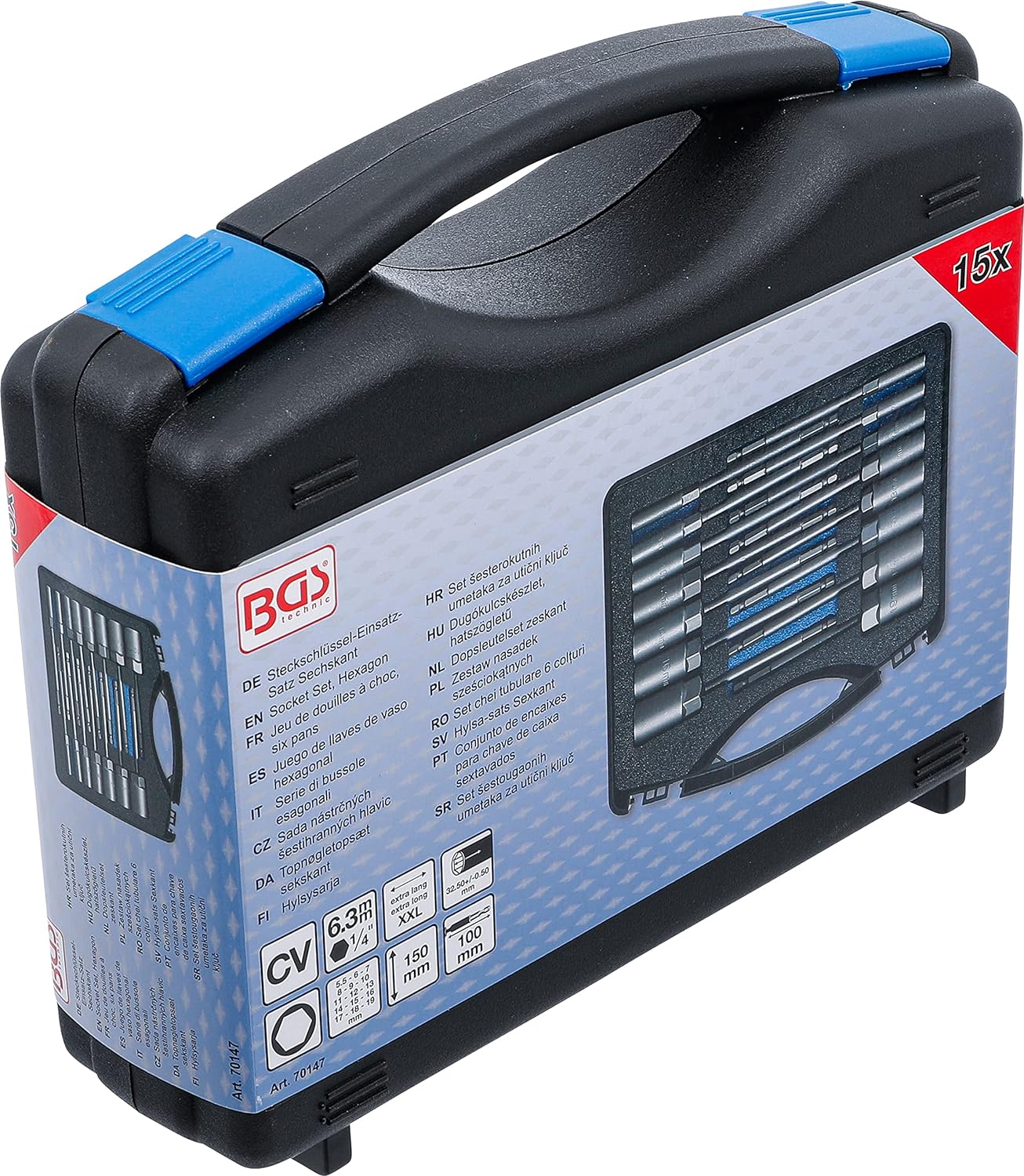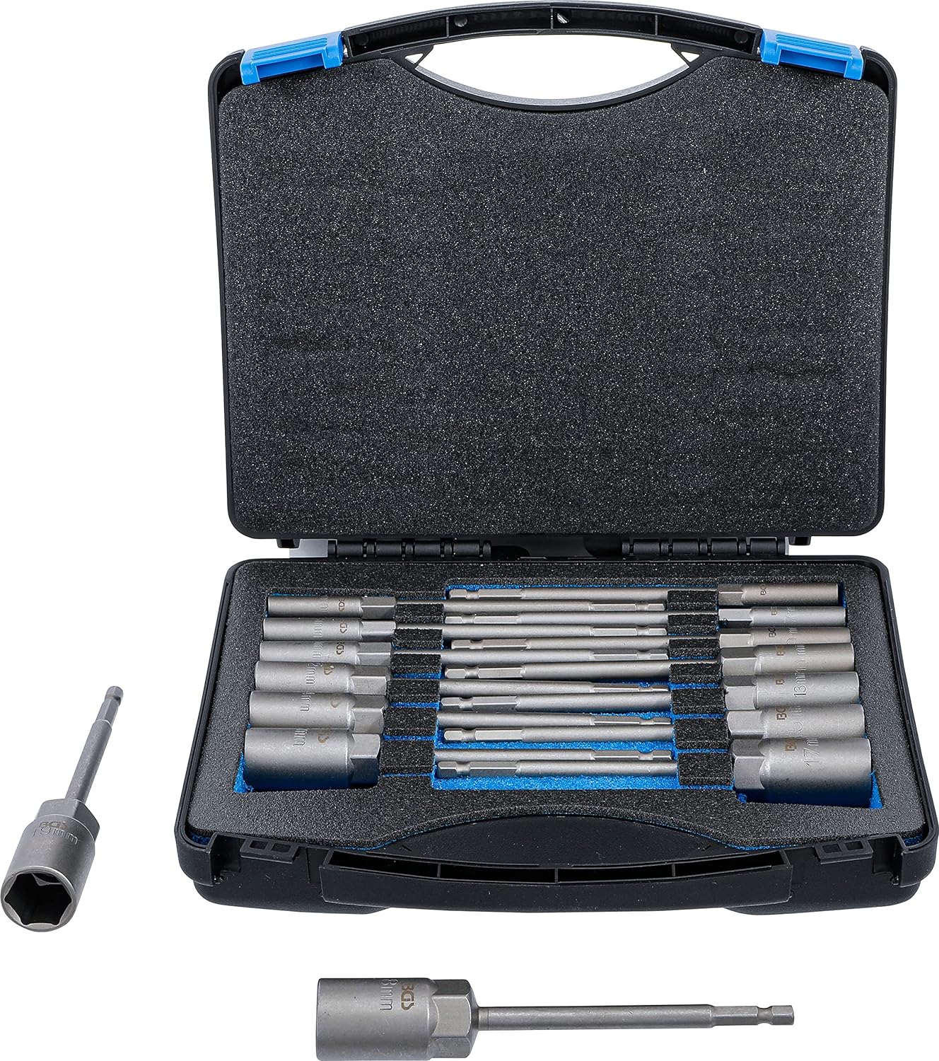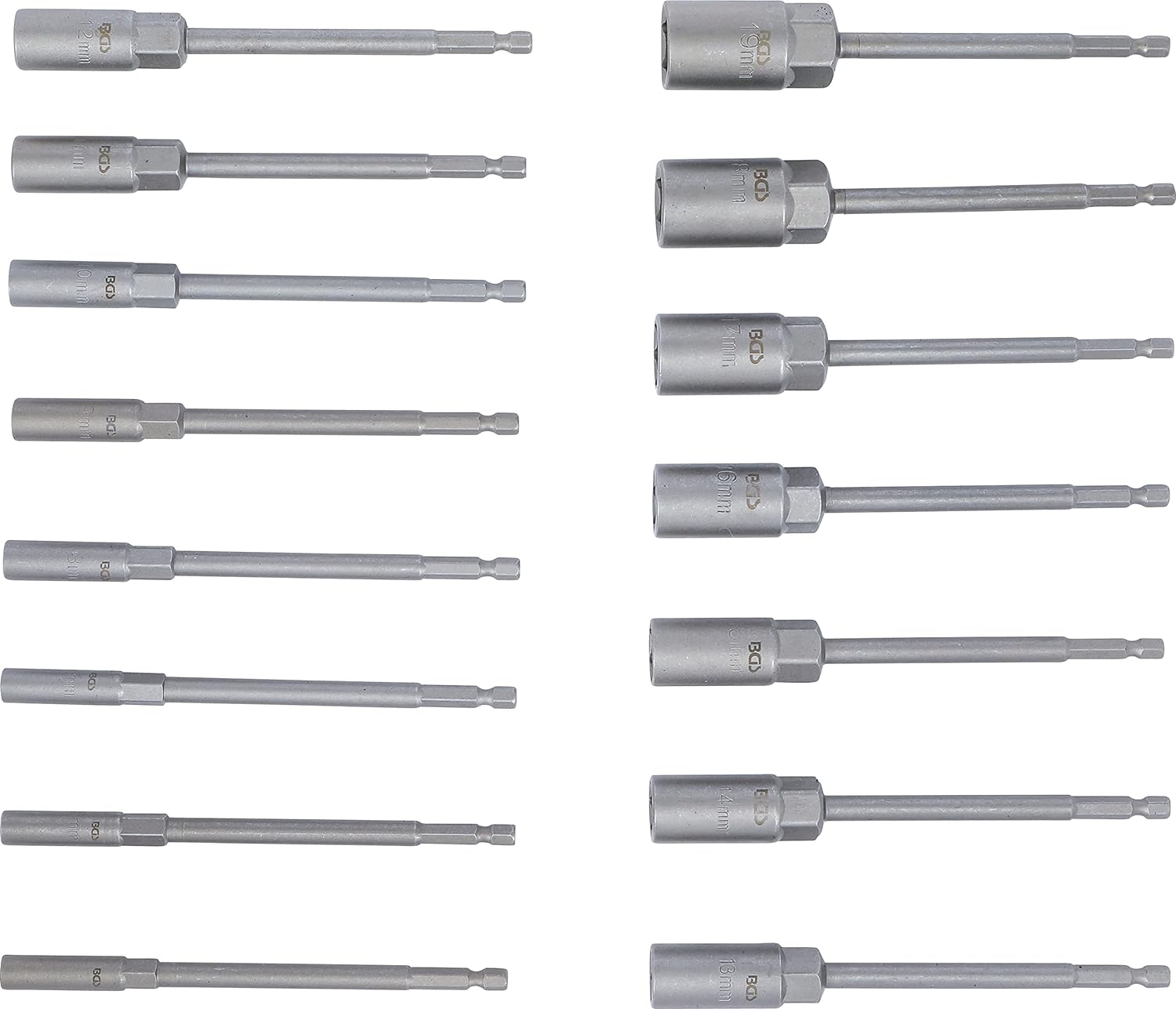 - Lieferumfang: Steckschlüssel-Einsatz Sechskant, extra lang | für Bohrmaschinen | Antrieb Aussensechskant 6,3 mm (1/4") | SW 5,5 mm, Aussendurchmesser 10,5 mm, - SW 6 mm, Aussendurchmesser 10,5 mm, - SW 7 mm, Aussendurchmesser 10,5 mm, - SW 8 mm,