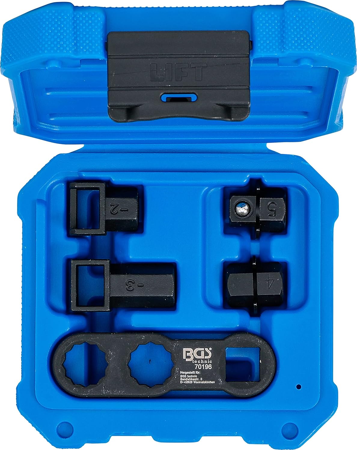 - ermöglicht ein sicheres und kontrolliertes Einstellen der Spannelementposition während des Aus- und Einbaus des Hilfsriemens | das Spannelement verfügt über einen Zapfen, an dem das Werkzeug angesetzt werden kann