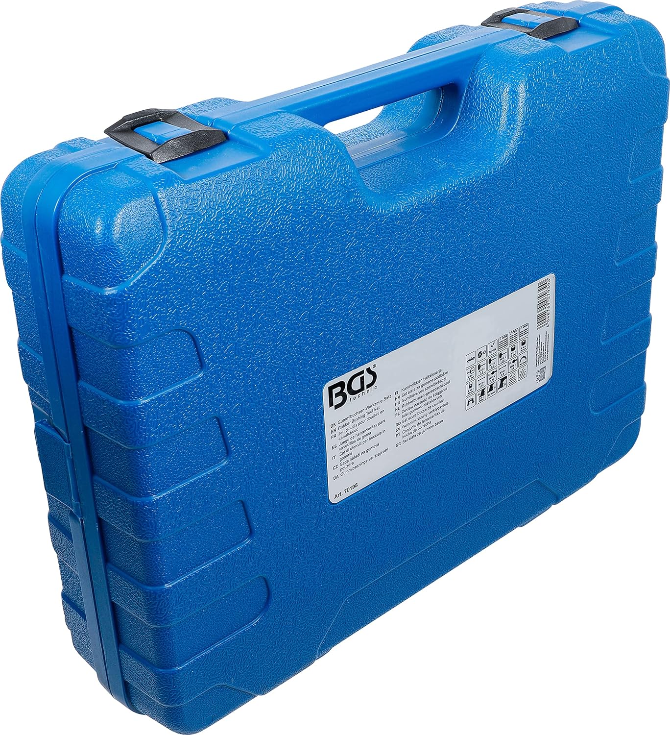 - 1 Zugspindel, M12 x 1,75 | 2 Zugspindelmutter, M12 x 1,75 | 1 Zugspindel, M14 x 2,0 | 2 Zugspindelmutter, M14 x 2,0 | 1 Reduzierschale für kleine Buchsen | 1 Montage-Druckplatte für kleine Buchsen | 1 Montage-Druckstück für kleine Buchsen | 1