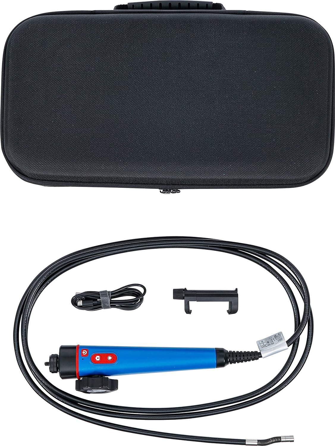 - Lieferumfang: Farb-Endoskop | Halter für Smartphone | Ladekabel USB-A < Micro-USB | Reinigungstuch für Kameralinse