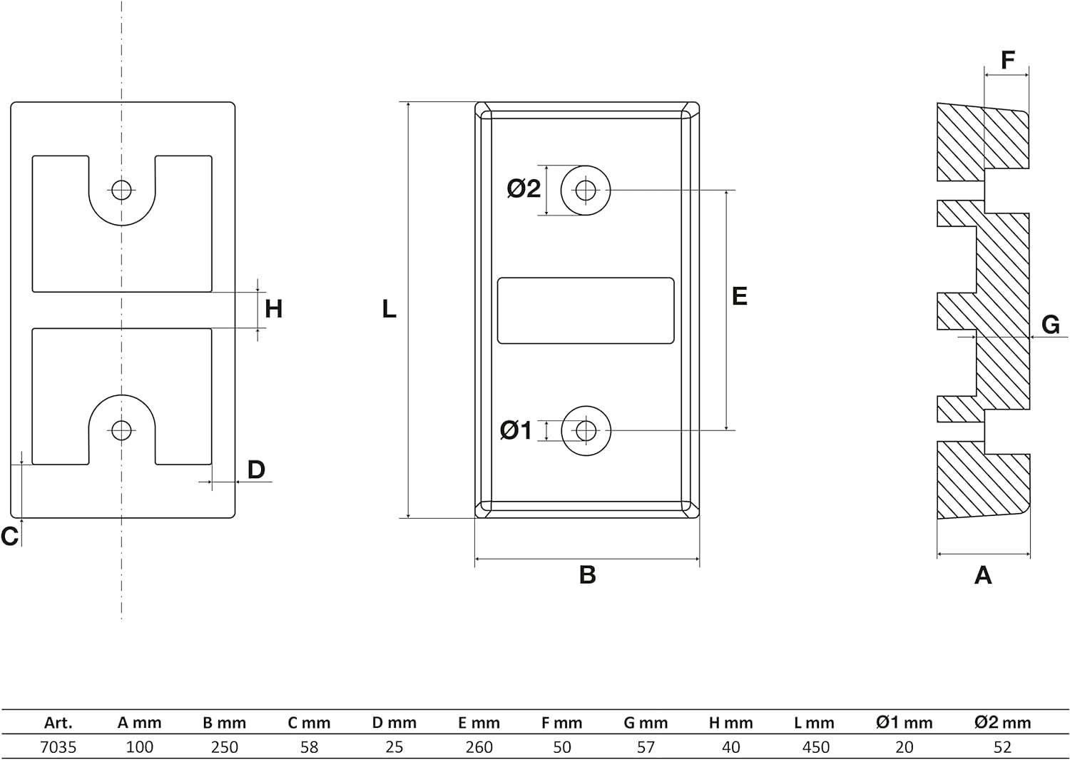 - Material: Gummi, Abmessungen: 450 x 250 x 100 mm, Lochdurchmesser aussen: 53 mm, Lochdurchmesser innen: 20 mm, Arbeitstemperatur: -55 - 55 °C
