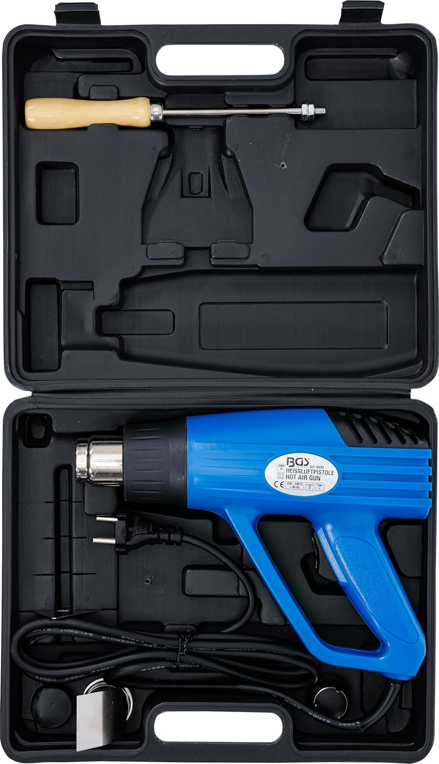 - Lieferumfang: 1 Heissluft-Gebläse | 1 Reduzierdüse (von 35 mm auf 25 mm) | 1 Dreieckschaber