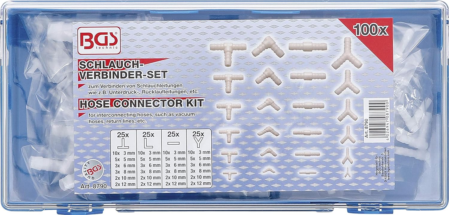 - 25 x Y-Verbinder: 10 Stück 3 mm | 5 Stück 5 mm | 3 Stück 6 mm | 3 Stück 8 mm | 2 Stück 10 mm | 2 Stück 12 mm