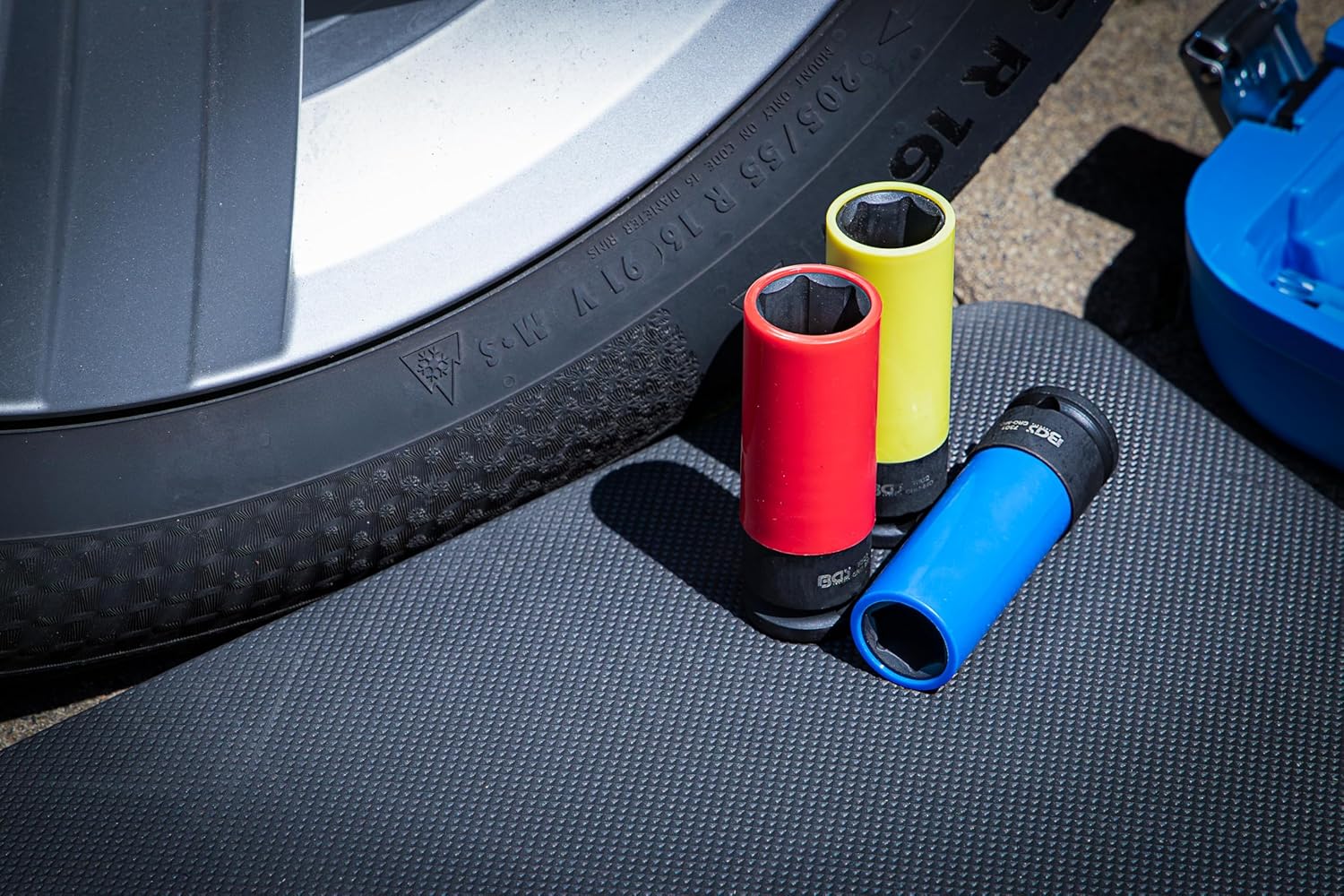 - Werkzeuge mit 12,5 mm (1/2") Antrieb: 1 Umschaltknarre | 17 Steckschlüssel-Einsätze SW 10 - 11 - 12 - 13 - 14 - 15 - 16 - 17 - 18 - 19 - 20 - 21 - 22 - 24 - 27 - 30 - 32 mm | 2 Steckschlüssel-Einsätze, tief, SW 16 - 18 mm | 2