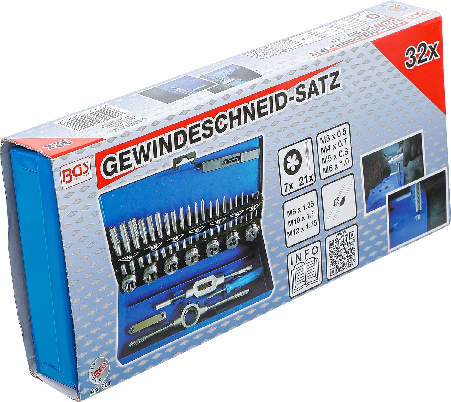 - 25 x 9 mm: M3 x 0.5 - M4 x 0.7 - M5 x 0.8 - M6 x 1.0 - M8 x 1.25 - M10 x 1.5 - M12 x 1.75