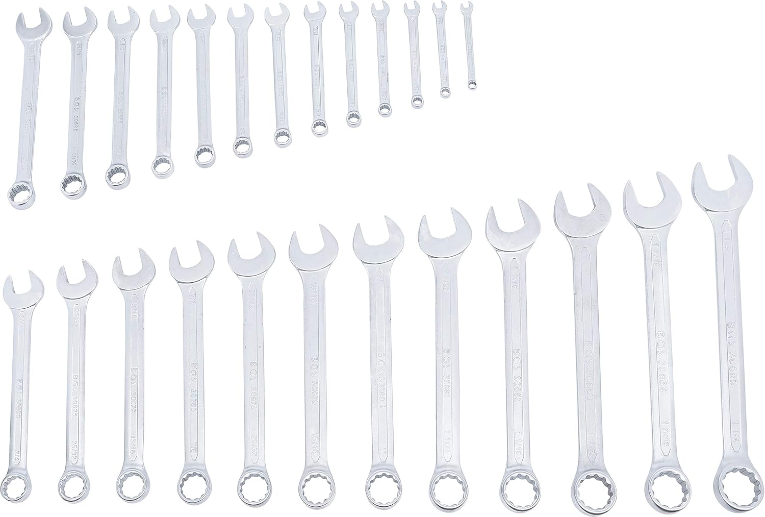 - Maul-Ringschlüssel SW 1/4" - 9/32" - 5/16" - 11/32" - 3/8" - 7/16" - 15/32" - 1/2" - 9/16" - 19/32" - 5/8" - 11/16" - 23/32" - 3/4" - 25/32" - 13/16" - 7/8" - 29/32" - 15/16" - 1" - 1.1/32" - 1.1/16" - 1.1/8" - 1.3/16" - 1.1/4"