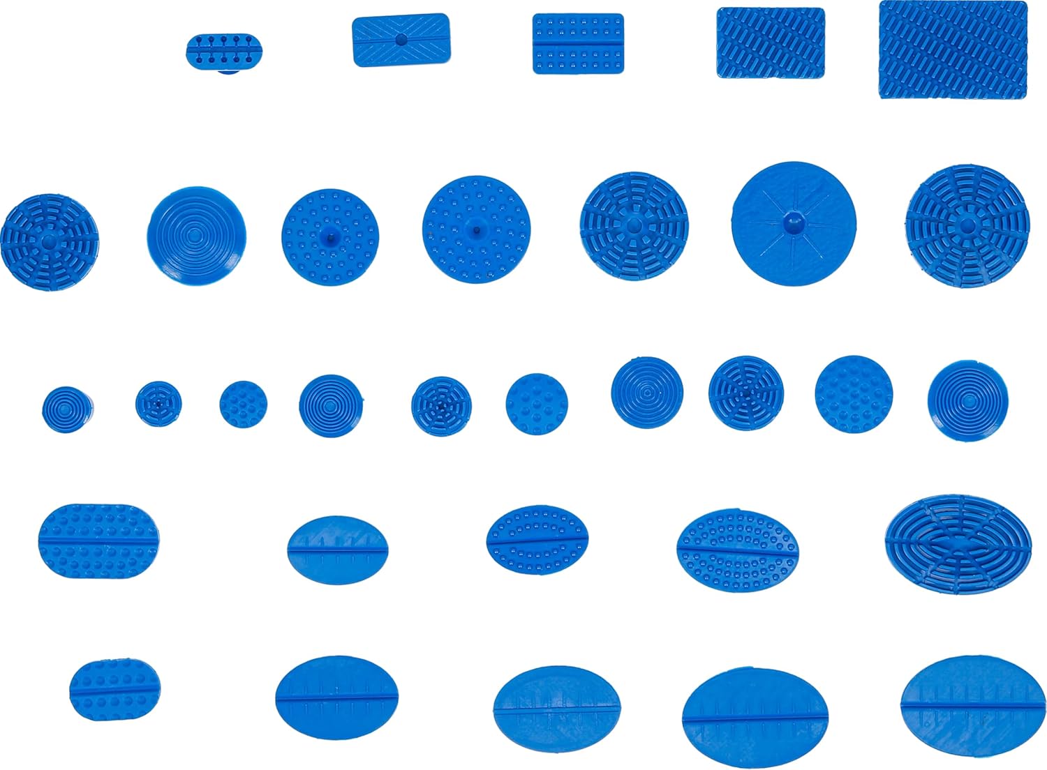 - Ausbeul-Pads, flexibler Kopf, blau | 1 Ausbeul-Pad, oval, gross: 48,5 x 32,5 mm | 1 Ausbeul-Pad, rund, extra gross: 40,5 mm | 1 Ausbeul-Pad, rund, gross: 35,5 mm | 1 Ausbeul-Pad, rund, mittel: 32 mm | 1 Ausbeul-Pad, rund, klein: 25,5 mm | 1 Ausbeul-Pad,