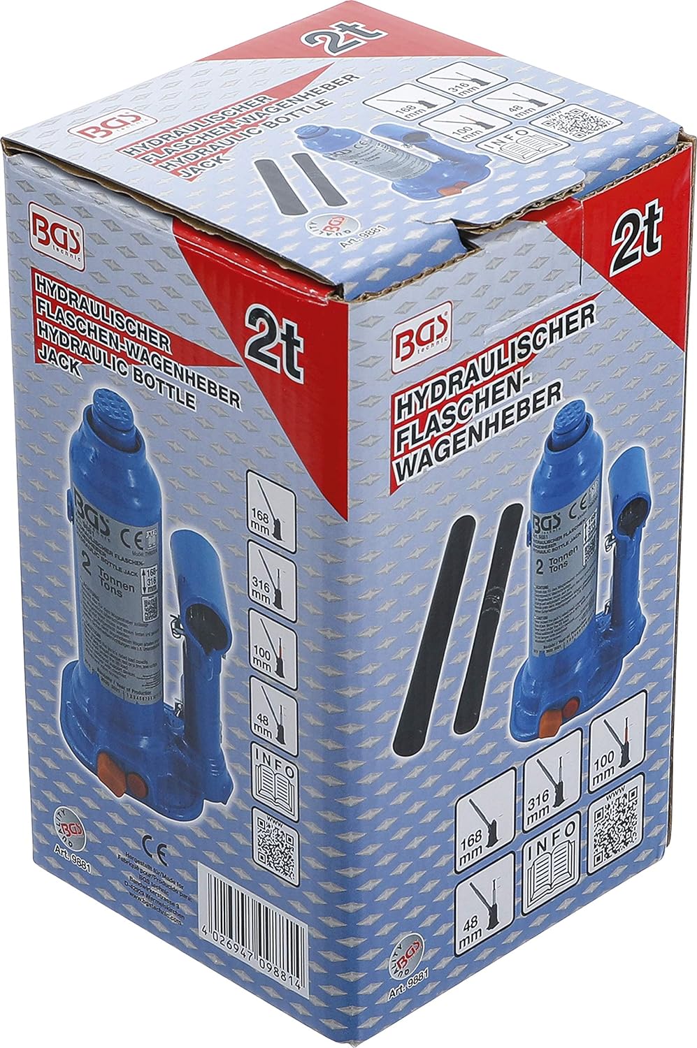 - Tragfähigkeit max.: 2 t | Hubhöhe: 20 mm | Höhe min.: 168 mm | Höhe max.: 316 mm