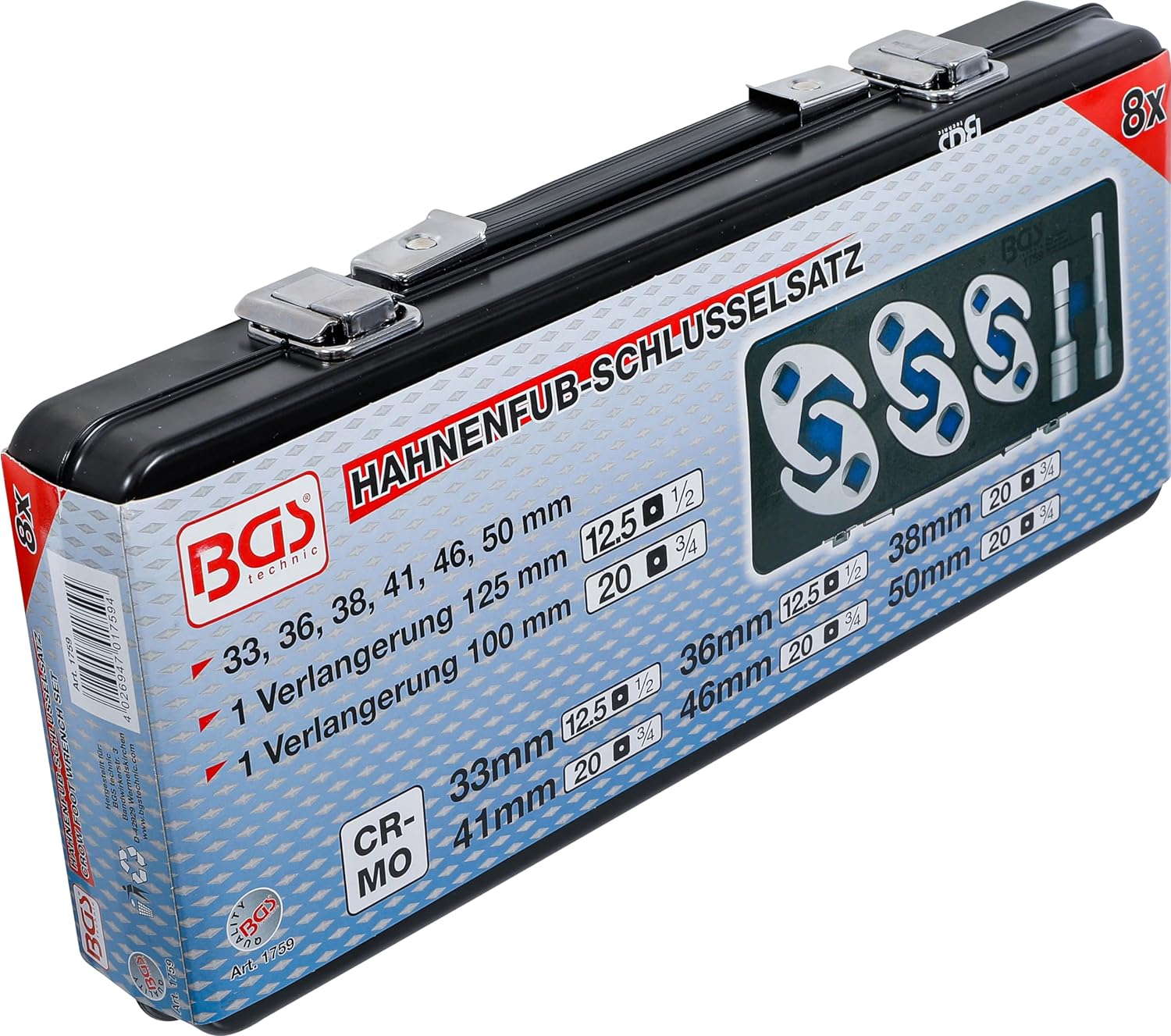- Hahnenfuss-Schlüssel Antrieb Innenvierkant 20 mm (3/4"): SW 38 - 41 - 46 - 50 mm
