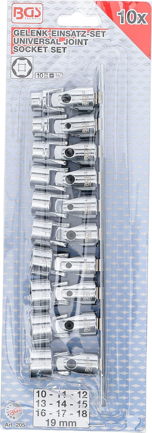 BGS 205 | Kardangelenk-Einsatz-Satz Sechskant | 10 mm (3/8") | SW 10 - 19 mm | 10-tlg.