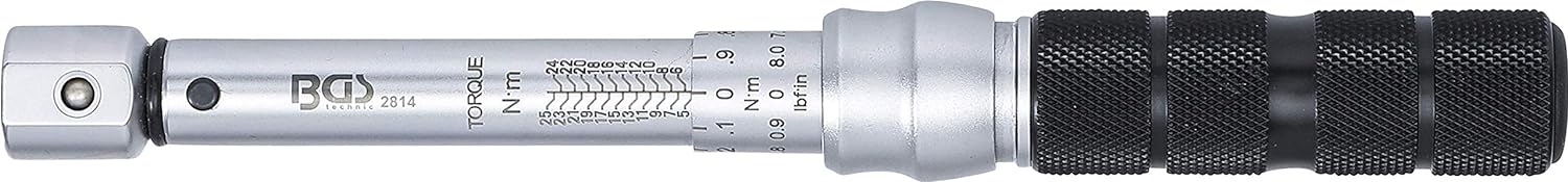 - Klicksignal bei Erreichen des eingestellten Drehmomentwertes | Drehmoment min.: 5 Nm (48,7 lbf.in) | Drehmoment max.: 25 Nm (225.7 lbf.in)