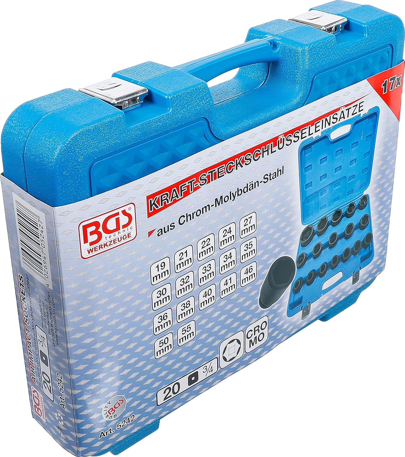 - Lieferumfang: Kraft-Steckschlüssel-Einsätze, Antrieb Innenvierkant 20 mm (3/4"), Abtrieb Sechskant: Aussen- max. 38 mm, Länge 51 mm, SW 19 | Aussen- max. 40 mm, Länge 51 mm, SW 21 | Aussen- max. 40 mm, Länge 51 mm, SW 22