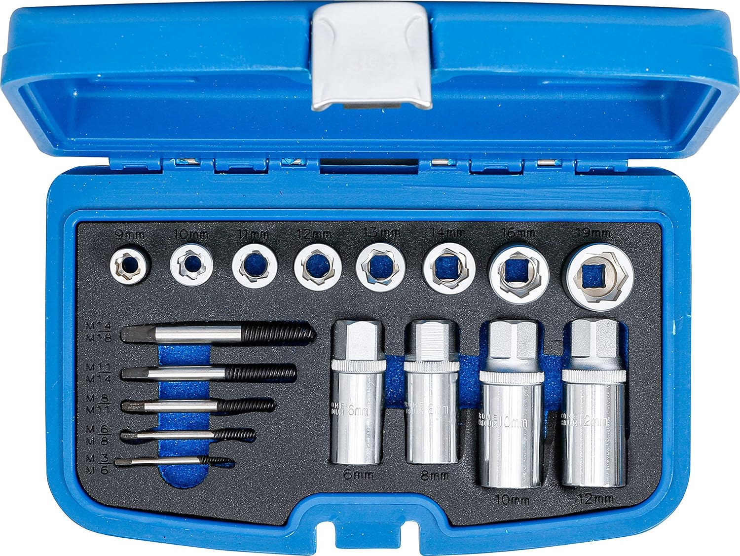 - 8 Spezialeinsätze, zum Lösen festsitzender und rundgedrehter Aussensechskantschrauben in 9 - 10 - 11 - 12 - 13 - 14 - 16 - 19 mm (auch zum Anziehen verwendbar)