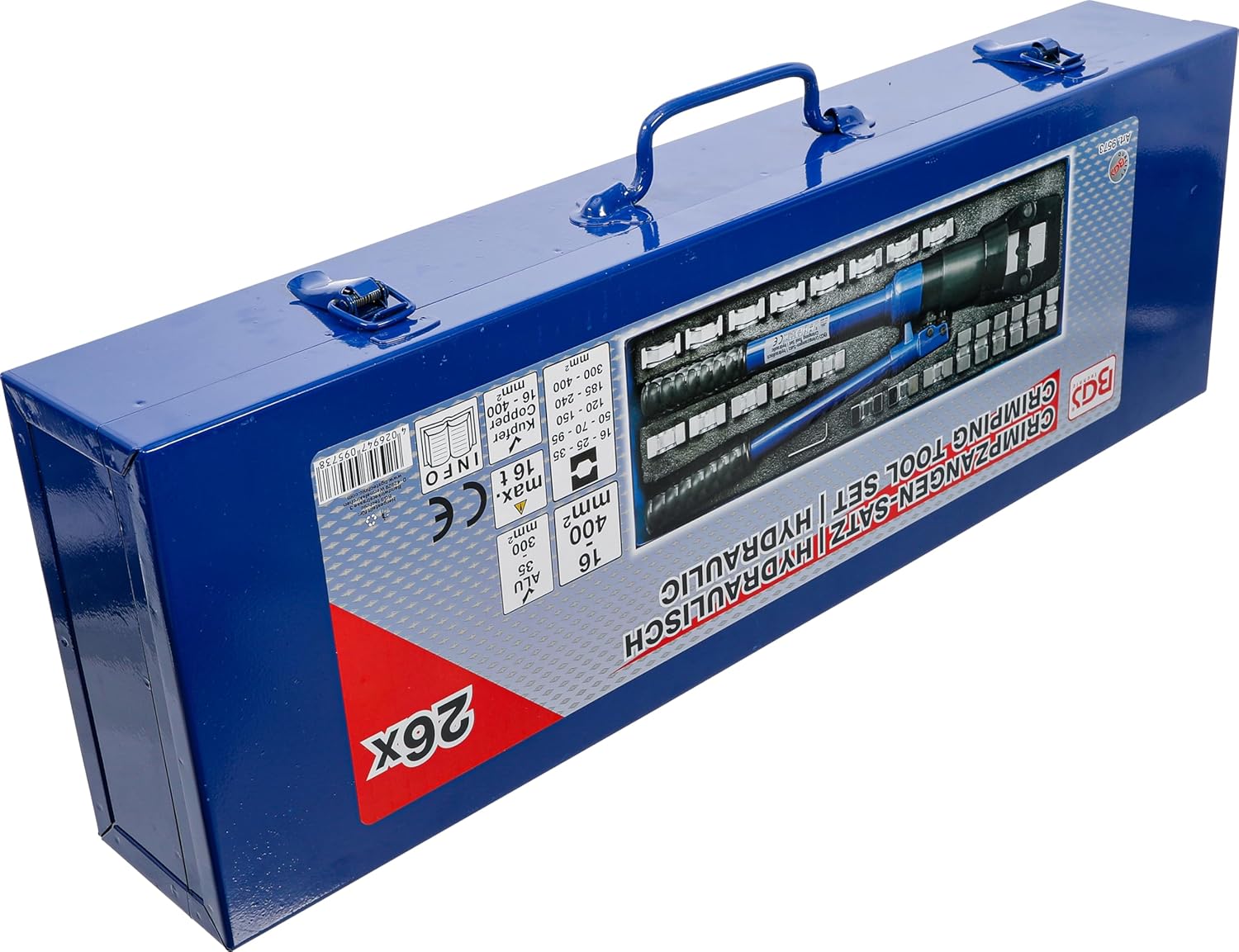 - Lieferumfang: Crimpzange, hydraulisch | 12 Pressbackensätze verwendbar für: 16, 25, 35, 50, 70, 95, 120, 150, 185, 240, 300, 400 mm²