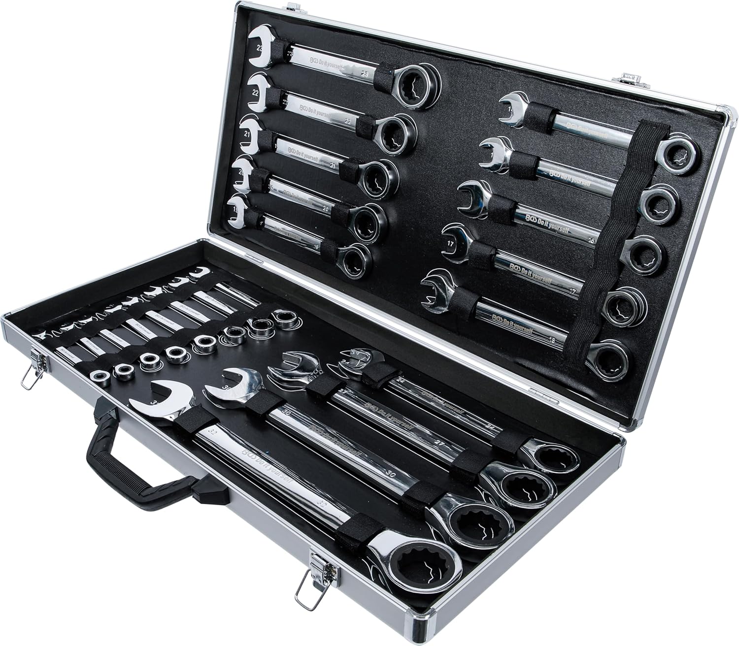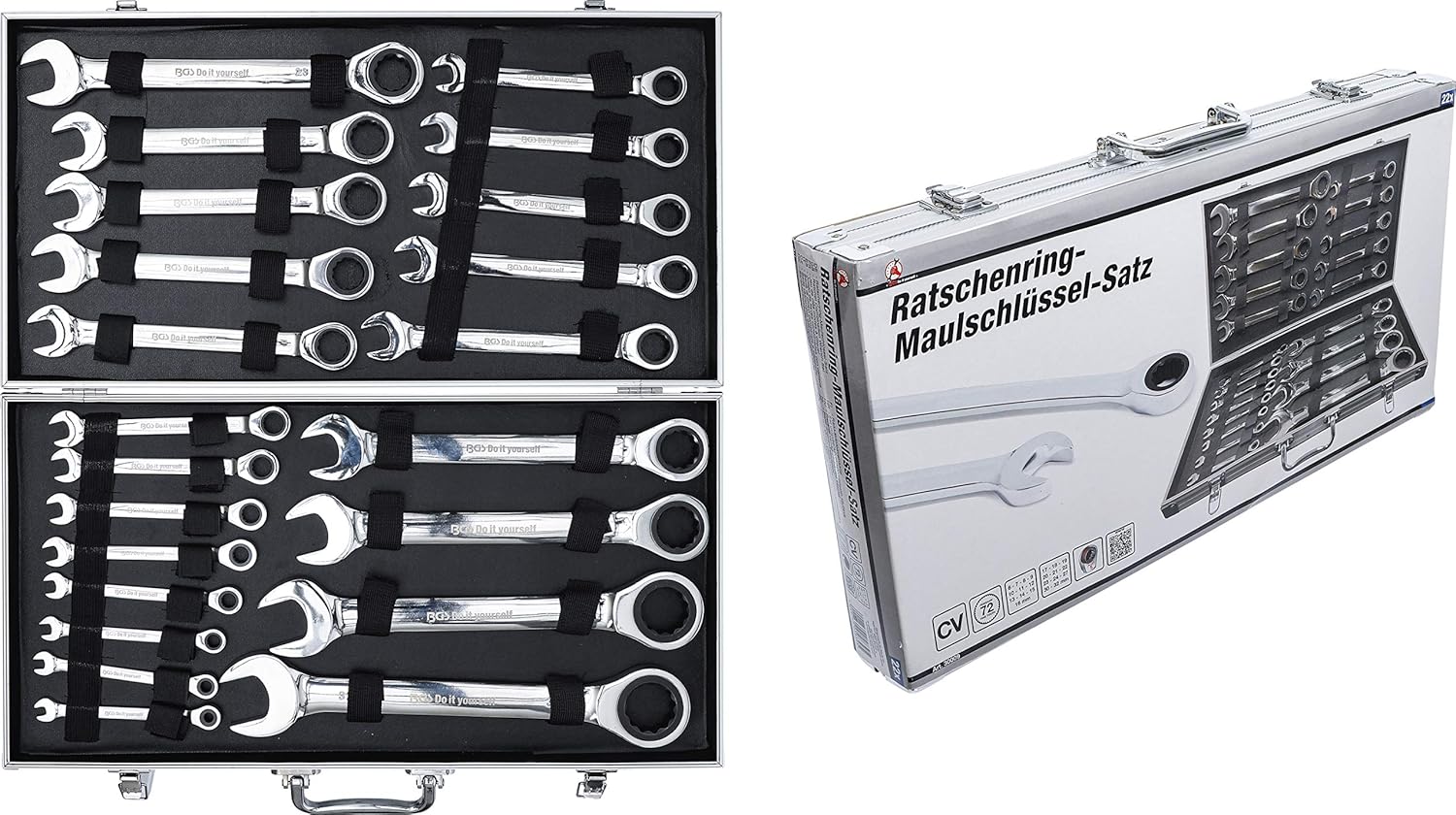 - Lieferumfang: Ratschenring-Maulschlüssel SW 6 - 8 - 9 - 10 - 11 - 12 - 13 - 14 - 15 - 16 - 17 - 18 - 19 - 20 - 21 - 22 - 23 - 24 - 27 - 30 - 32 mm
