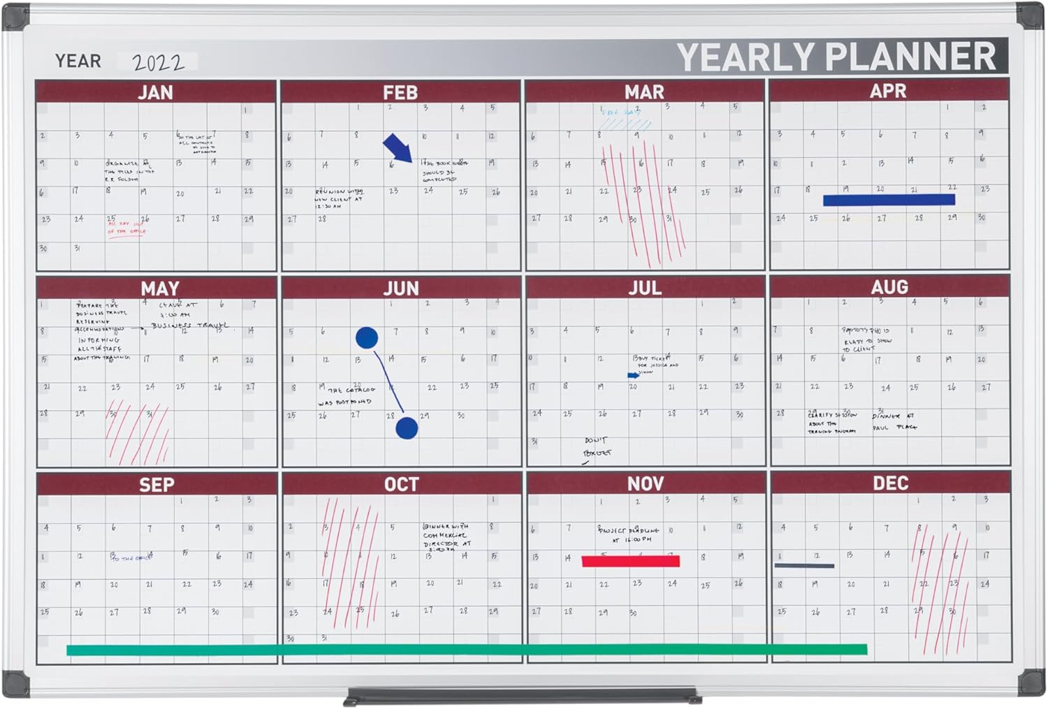 - Jahresplaner kommt inklusive Marker, Stiftablage, Magneten und Wandmontagese