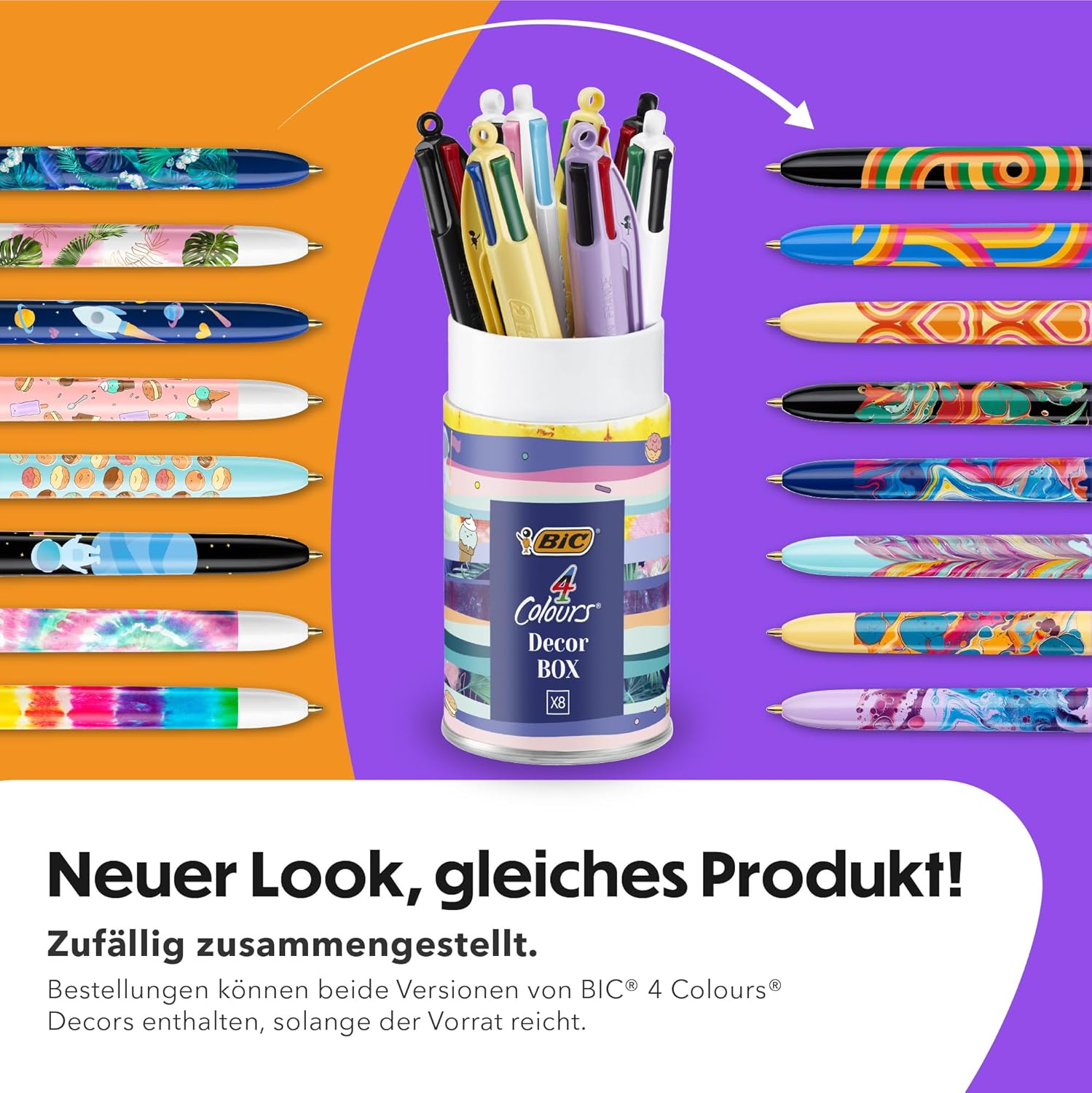 - Vielseitiges Stiftset: BIC Kugelschreiber 4-farbig, jeder Stift enthält 4 lebendige Farben (blau, rot, grün und schwarz); Set enthält 8 hochwertige Kugelschreiber von BIC