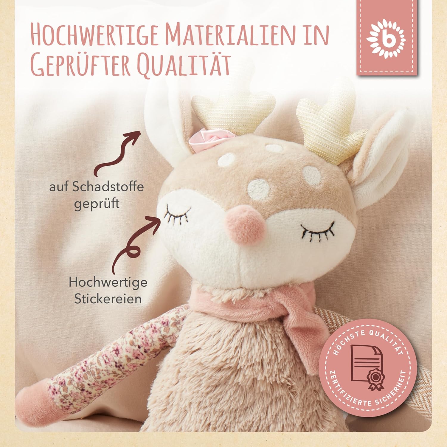 - QUALITÄT: Das Plüschtier ist aus hochwertigem Plüsch gefertigt und Kuschelweich. Hergestellt nach höchsten Qualitätsstandards, wird das Reh ein treuer Begleiter für Dein Baby