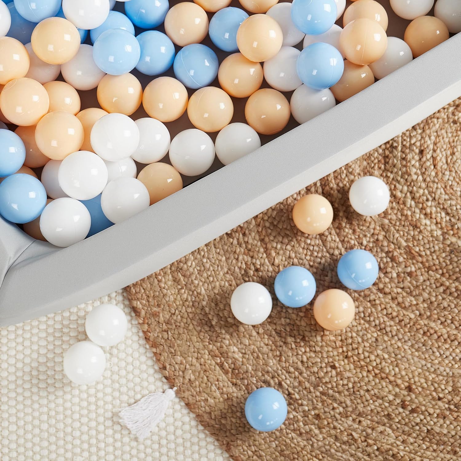 - HOHER SPAssFAKTOR: Mit diesen schönen Bällebad Bällen ist der Spass vorprogrammiert! Die 100 Kugeln kommen in den Pastelltönen blau, weiss und beige. Die Bälle können zum Beispiel in ein Baby Bällebad oder in ein Bällebad Zelt gefüllt werden.