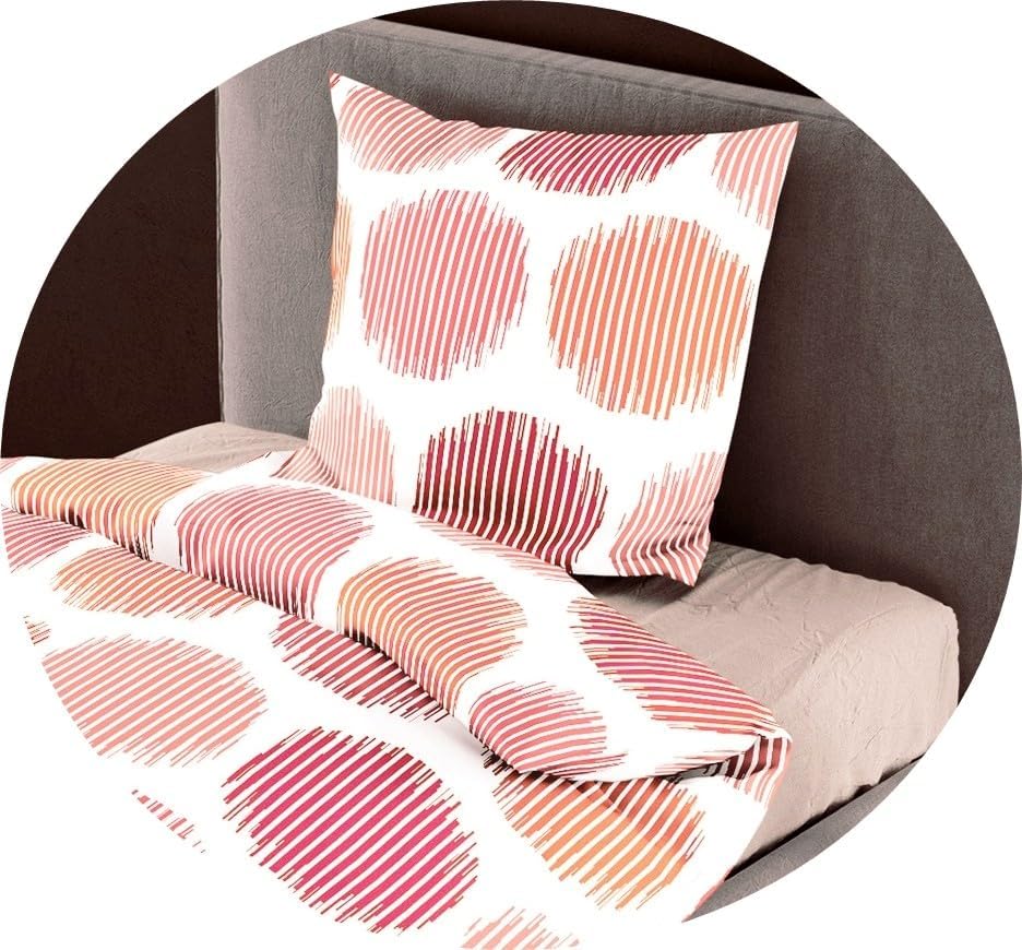 Bierbaum Seersucker Bettwäsche 2 TLG. 135x200cm Dots Kreise Rot/Grün Baumwolle, Farbe:Rot, Rot