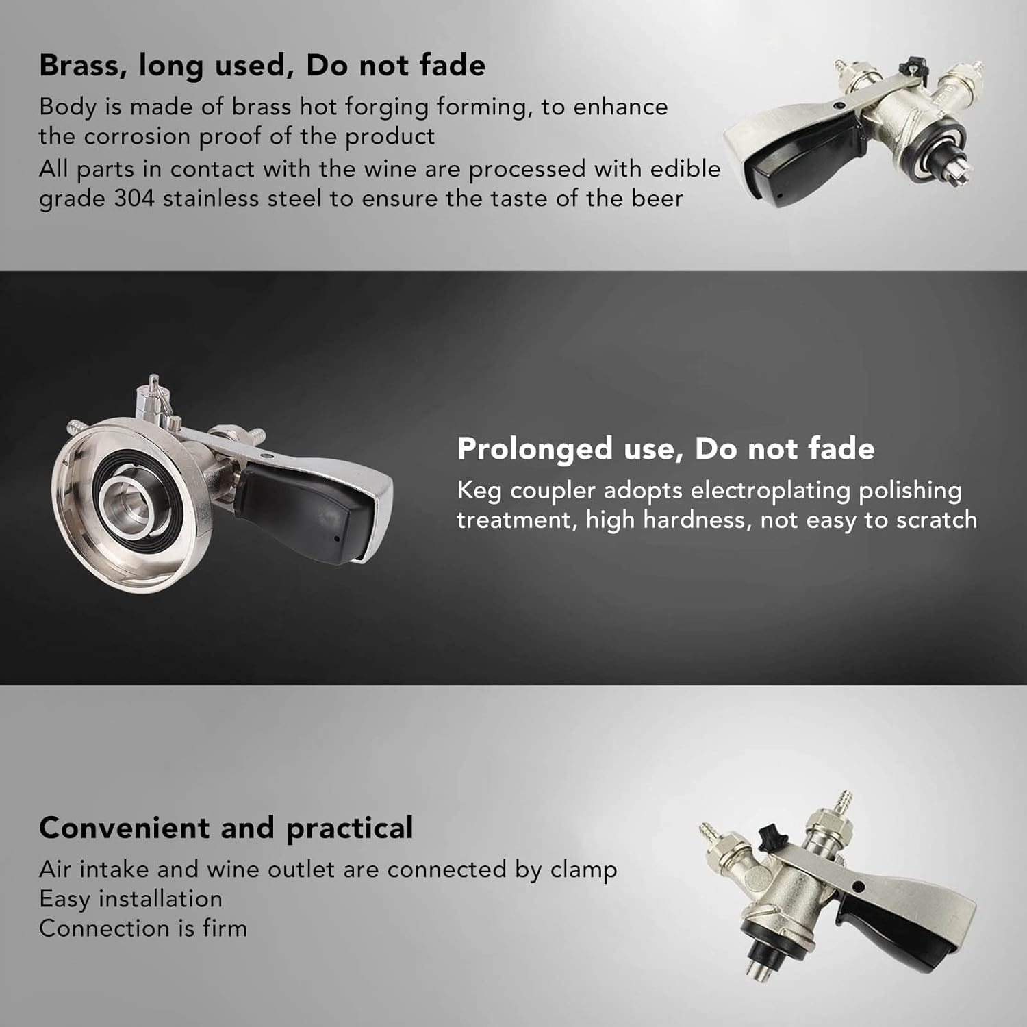 - 【Grosse Kompatibilität】 Der Keg-Koppler kann mit Fassbiermaschinen, Zapfhähnen, Biertürmen, Weinspeeren usw. verwendet werden. Perfekt zum Ausgeben von Bier, Wein, Limonade und anderen kohlensäurehaltigen Getränken.