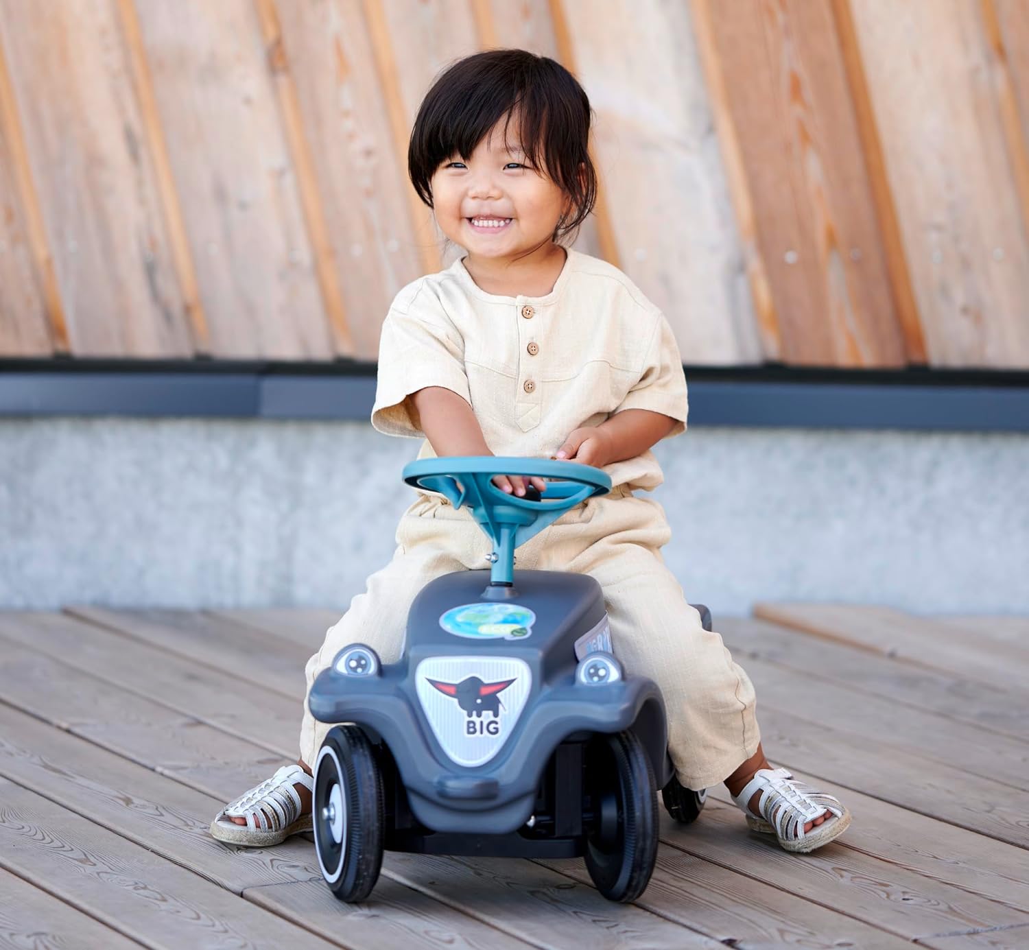- Nachhaltig hergestellt - DAS Bobby Car für alle umweltbewussten Autofahrer:innen und Eltern: Das Auto besteht aus wiederverwertetem Kunststoff und die Räder aus recycelten BIG Produktionsabfällen!