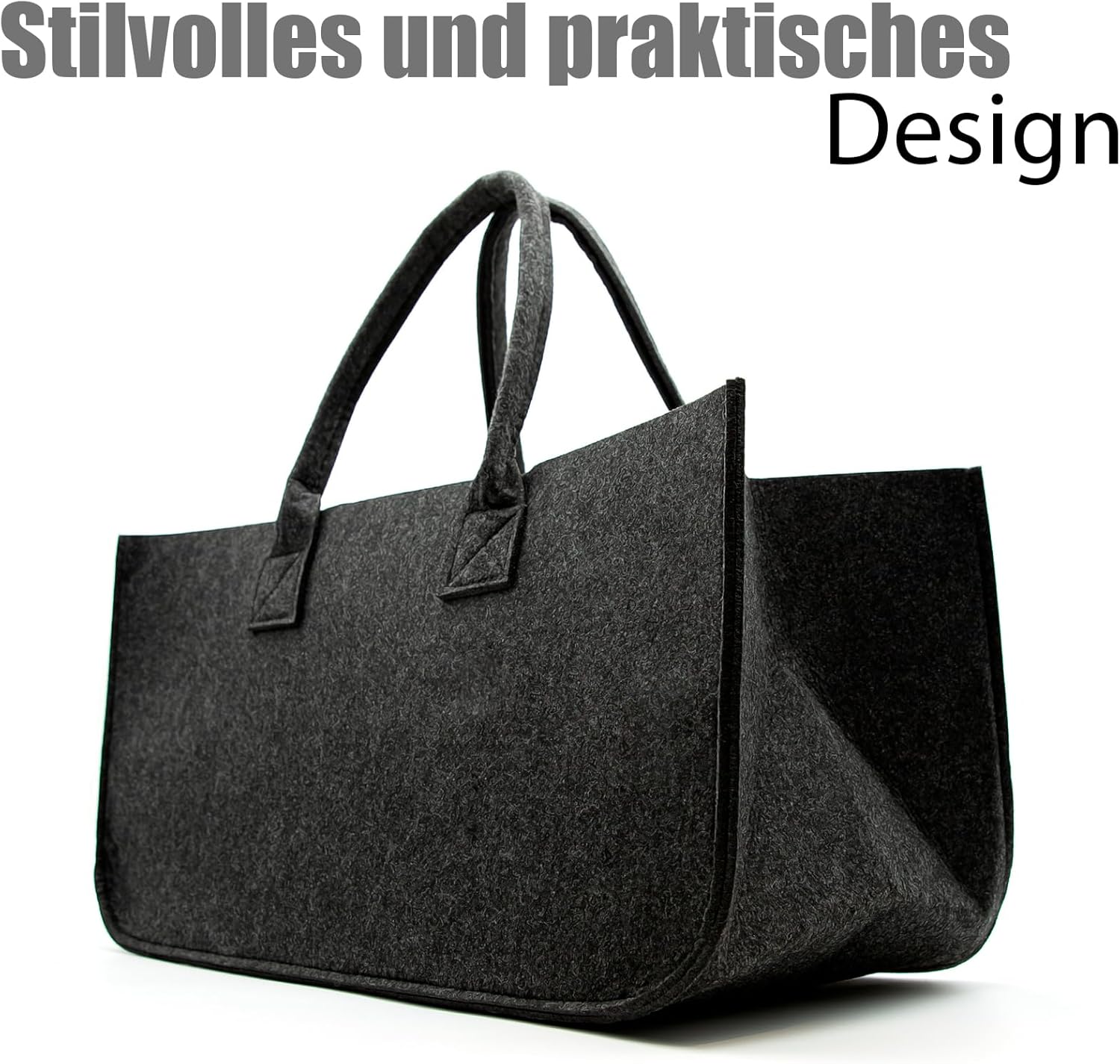 - VIELSEITIGE NUTZUNGSMÖGLICHKEITEN: Diese grosse Anthrazit-Filztasche ist perfekt für die Aufbewahrung von Kaminholz oder als stilvoller Shopper für den täglichen Gebrauch geeignet.