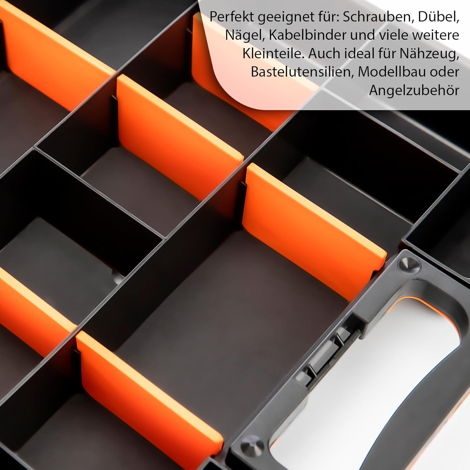 - EFFIZIENT & ZEITSPAREND: Das ständige Suchen nach Kleinteilen hat ein Ende! Unser Sortimentskasten schafft Ordnung und Überblick in Ihrem Arbeitsbereich. Der transparente Deckel sorgt für klare Sicht auf den Inhalt, ohne den Kasten öffnen zu müssen