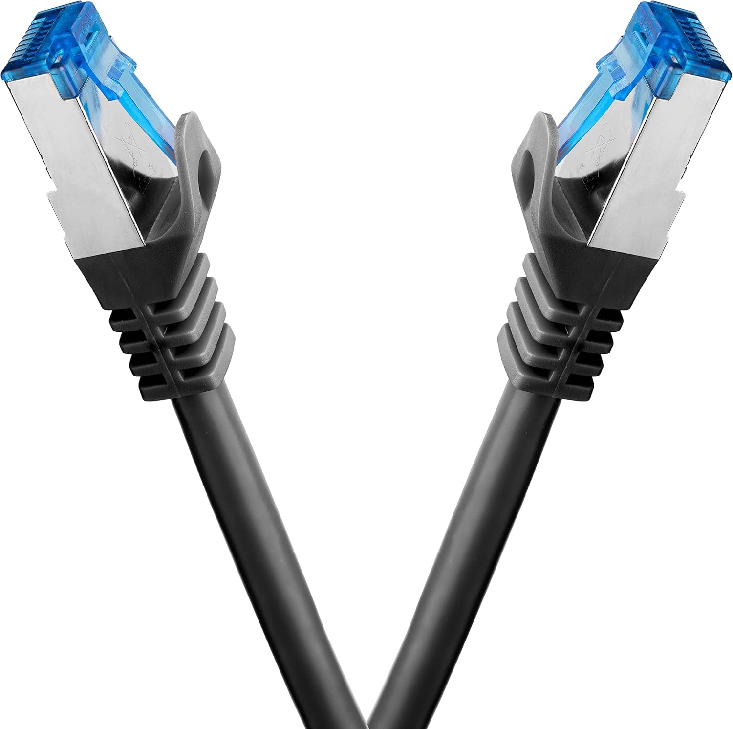 - KAT7 Ethernetkabel Netzwerkkabel - geschirmte 2 x RJ45-Stecker LAN Stecker , vergoldete Kontaktflächen , mit angespritzter robuster Knickschutztülle - Knickschutz , hochwertiger Innenleiter , Längenangabe am Stecker