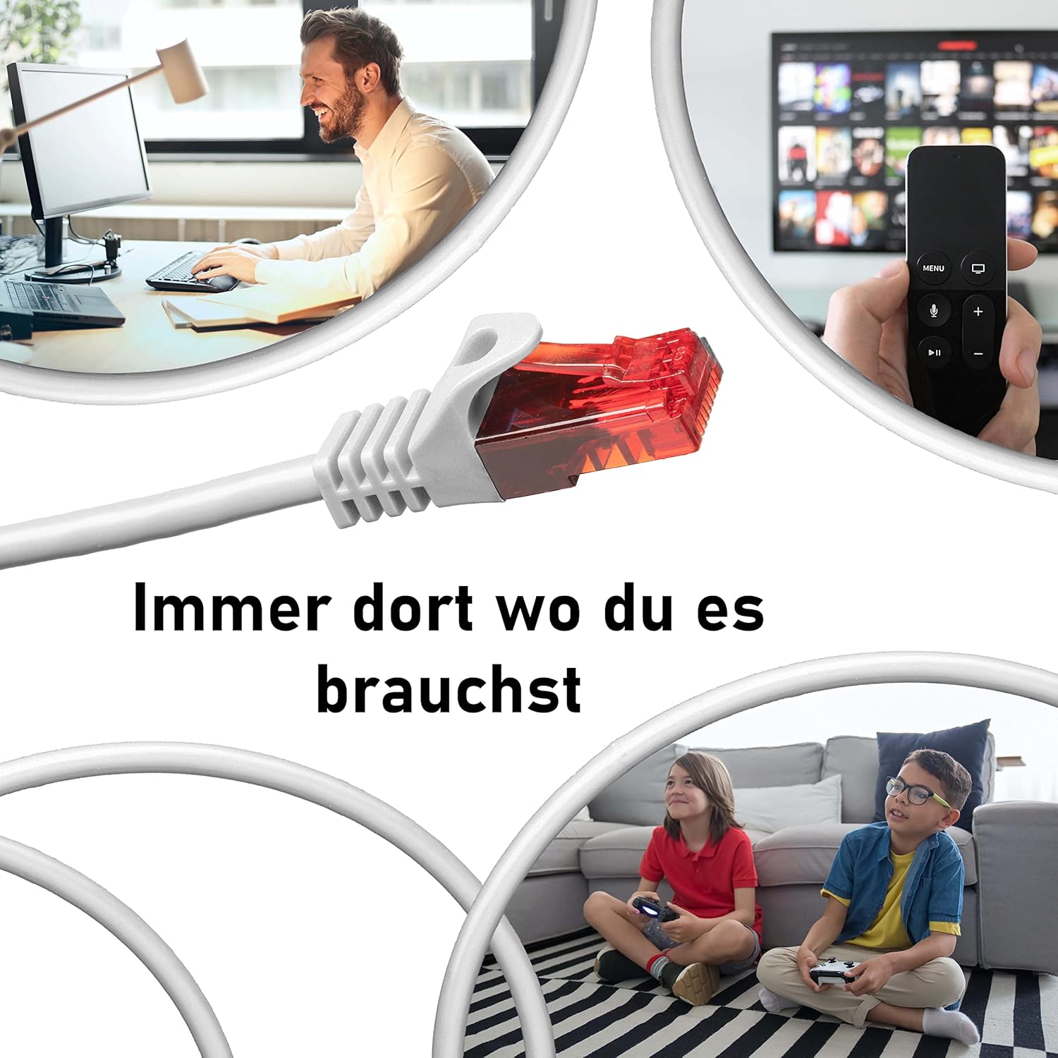 - Ethernet-Kabel Netzwerkkabel - 2 x RJ45-Stecker LAN Stecker , vergoldete Kontaktflächen , mit angespritzter robuster Knickschutztülle - Knickschutz , hochwertiger Innenleiter , Längenangabe am Stecker