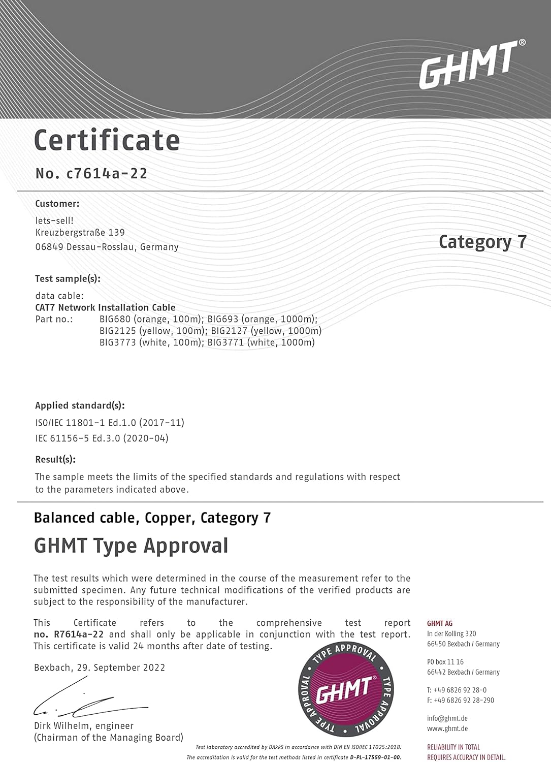 - CAT.7 100 Meter Netzwerk Kabel professionelles GHMT geprüftes und zertifiziertes Netzwerkkabel-Verlegekabel ◼️ Category 7 ◼️ Gigabit 1000Mhz ◼️ 10Gbit Betriebs-Frequenz