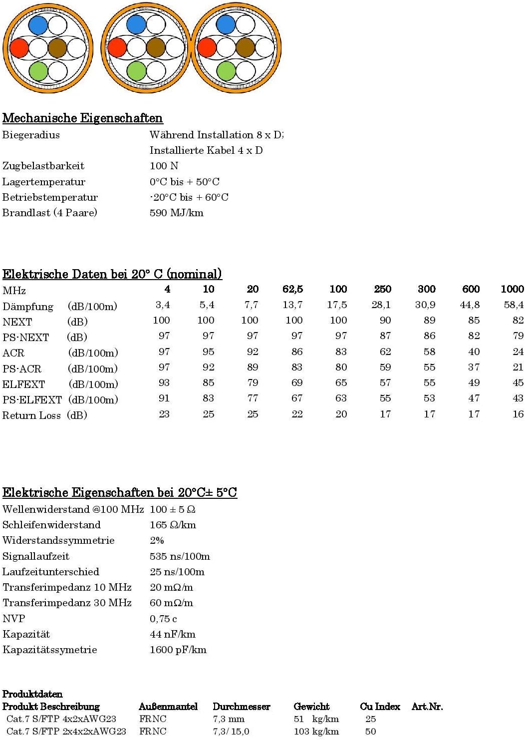 - CAT7 Qualitäts-Installationen Kupfer Leitungen ◼️ Kupferverkabelung ◼️ Norm ISO IEC 11801-1, ISO IEC 61156-5 ◼️ PiMF Paar in Metallfolie ◼️ S/FTP doppelt geschirmt ◼️ CU-Draht