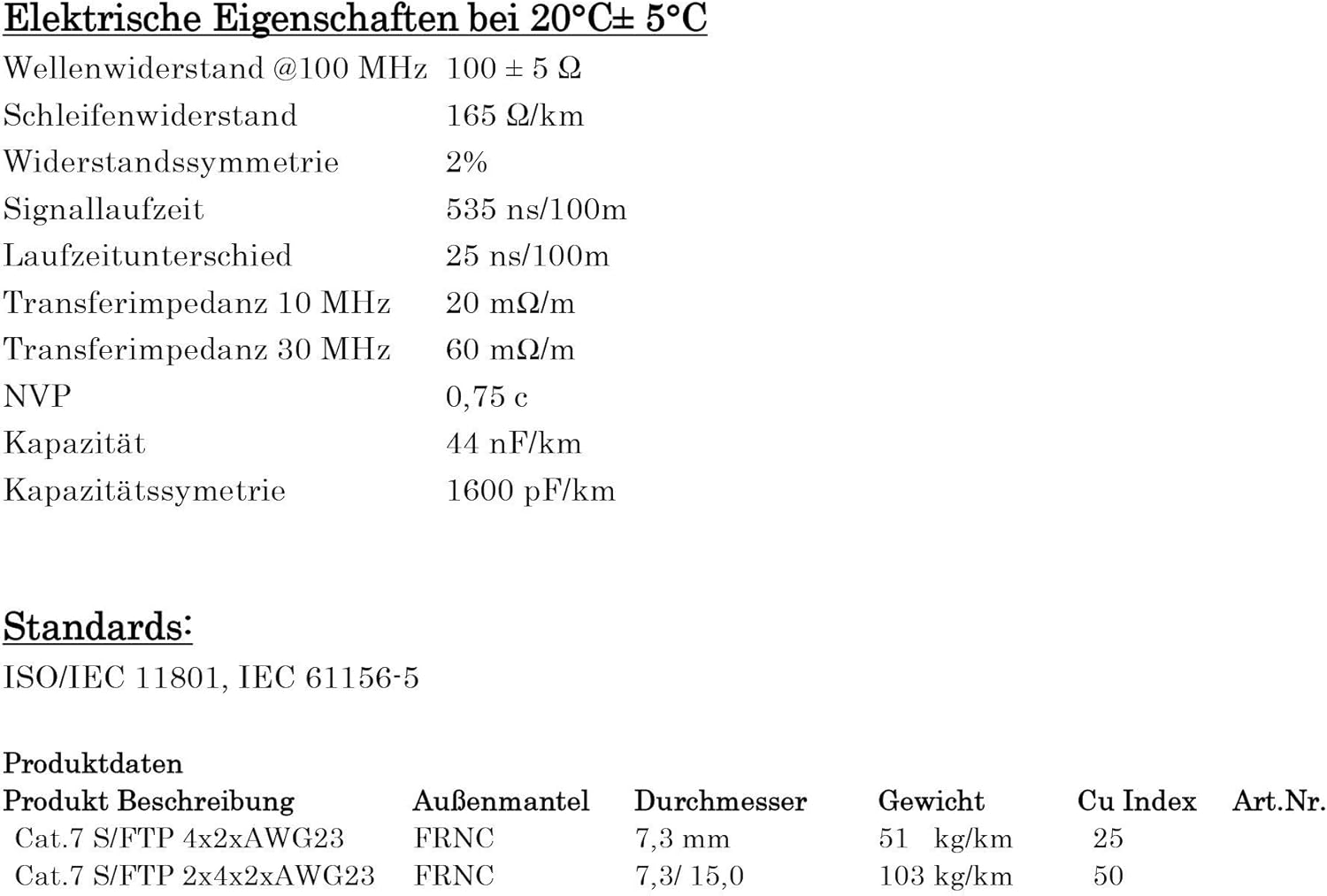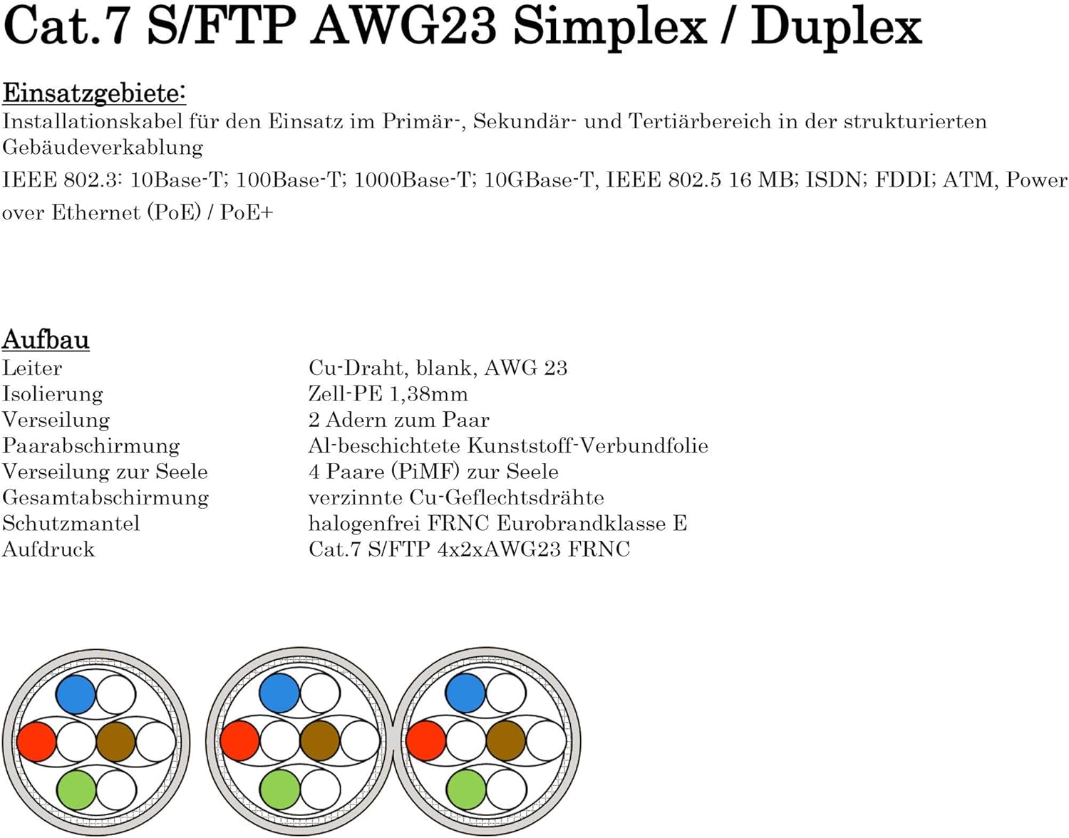 • CAT7 Qualitäts-Installationen Kupfer Leitungen ◼️ Kupferverkabelung ◼️ Norm ISO IEC 11801-1, ISO IEC 61156-5 ◼️ PiMF Paar in Metallfolie ◼️ S/FTP doppelt geschirmt ◼️ CU-Draht