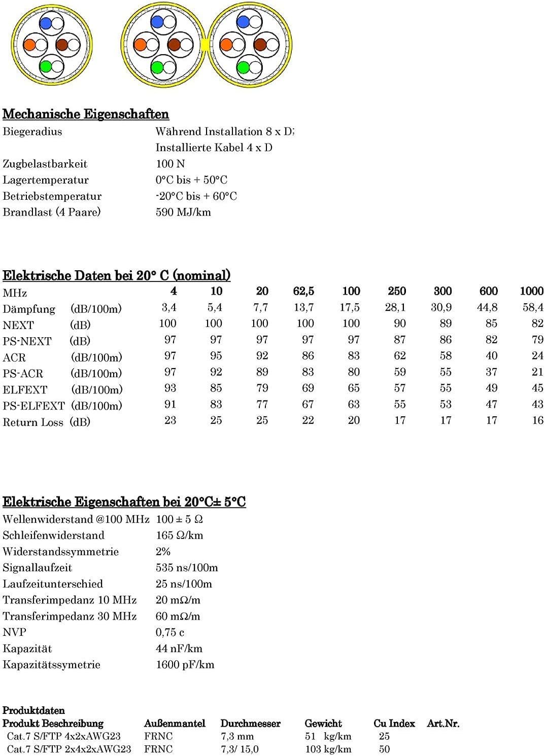 - CAT7 Qualitäts-Installationen Kupfer Leitungen ◼️ Kupferverkabelung ◼️ Norm ISO IEC 11801-1, ISO IEC 61156-5 ◼️ PiMF Paar in Metallfolie ◼️ S/FTP doppelt geschirmt ◼️ CU-Draht