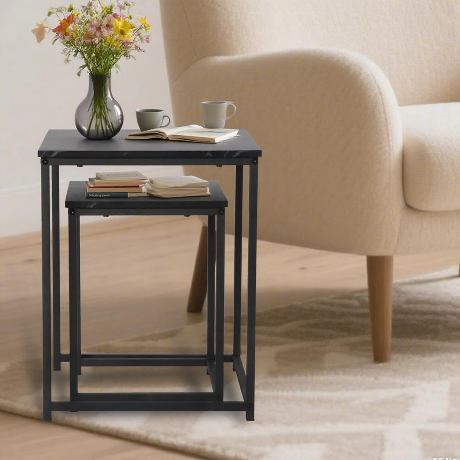 - 【Doppelter Quadratischer Tisch Design】Ein zweiteiliges Set aus schwarzen, modischen Beistelltischen, die sich perfekt in jeden Einrichtungsstil einfügen. Sie können sie ganz nach Belieben an jedem beliebigen Ort oder in jeder Ecke aufstellen!