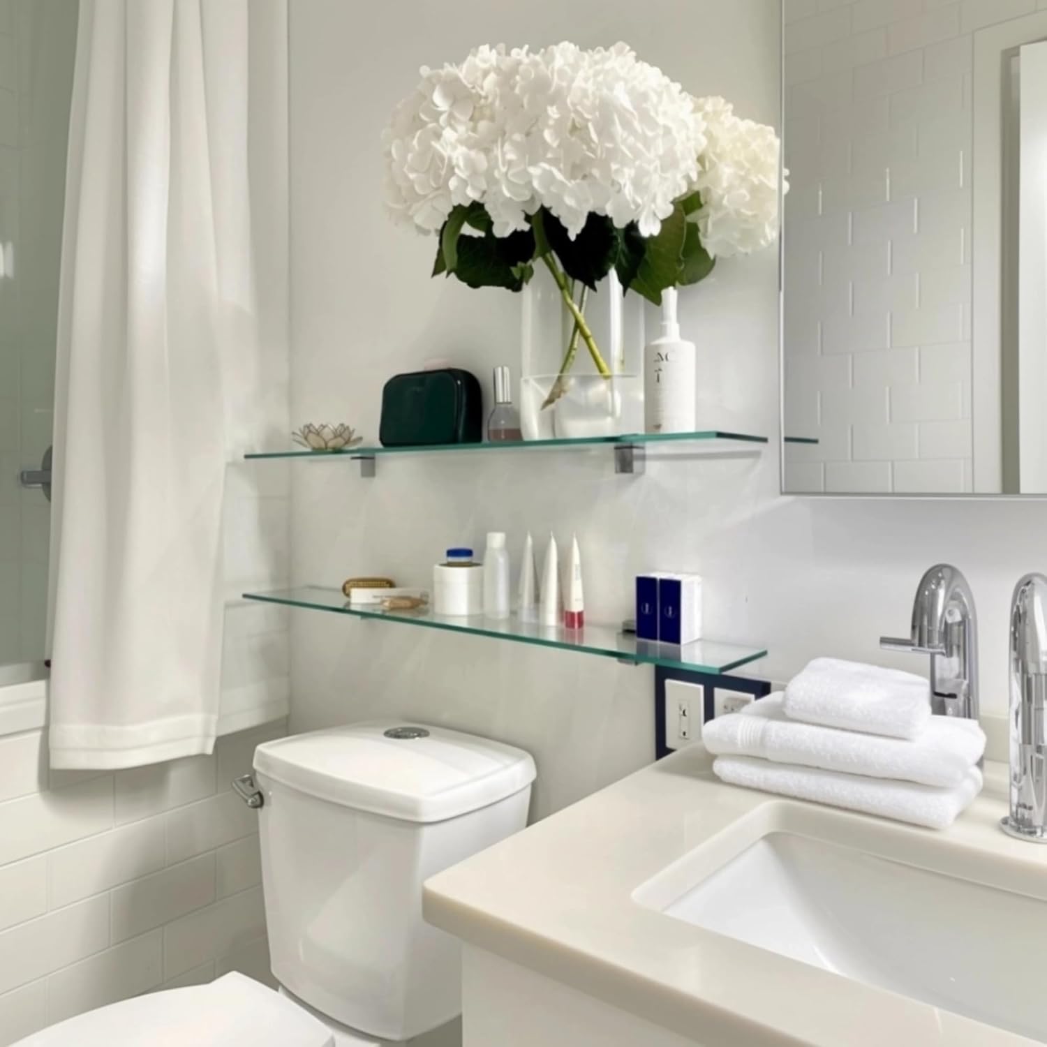 - ✅ EINFACHE MONTAGE Im Lieferumfang befindet sich alles, was Sie zur Befestigung der Badablage benötigen. Die Wandmontage erfolgt durch 2 Regalhalter, die an die Wand geschraubt werden. Die Halterungen sind rostfrei und somit perfekt als Glasablage