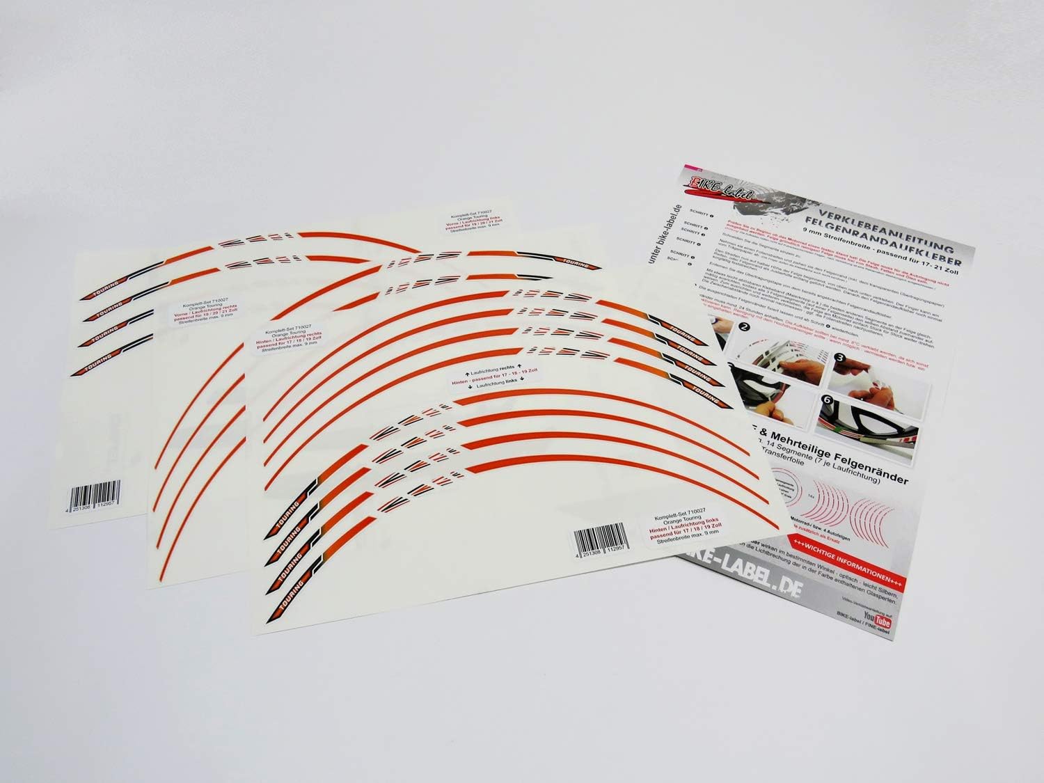 - ACHTUNG! Die Felgenrand-Aufkleber halten nicht auf rauen Felgenoberflächen (z.B. pulverbeschichtete Felgen)