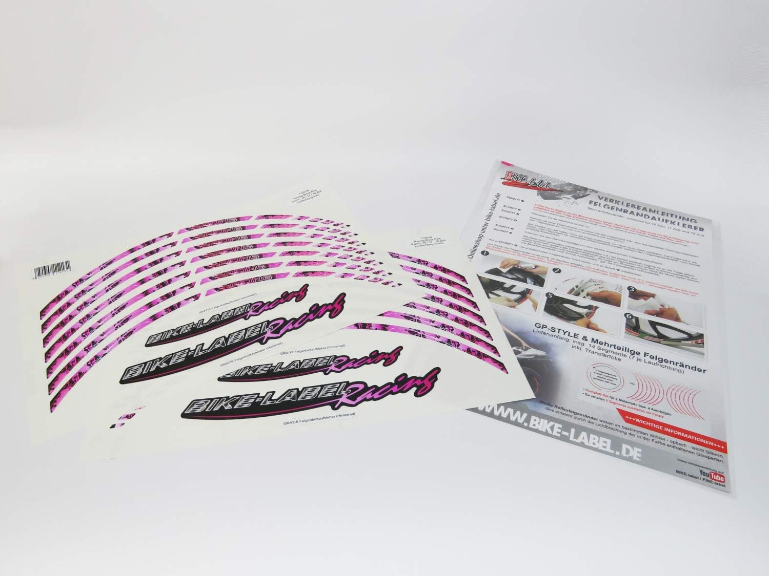Felgenrand Aufkleber Racing Pink Schwarze Spritzer 17 Zoll 710019