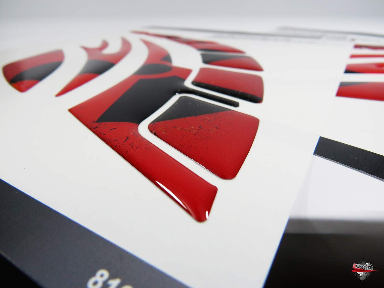 - Grösse: je Seite ca 250 x 125 mm (Set für linke und rechte Tank Seite) Materialstärke: ca. 1 - 2 mm (bezogen auf die Anordnung wie im Bild)