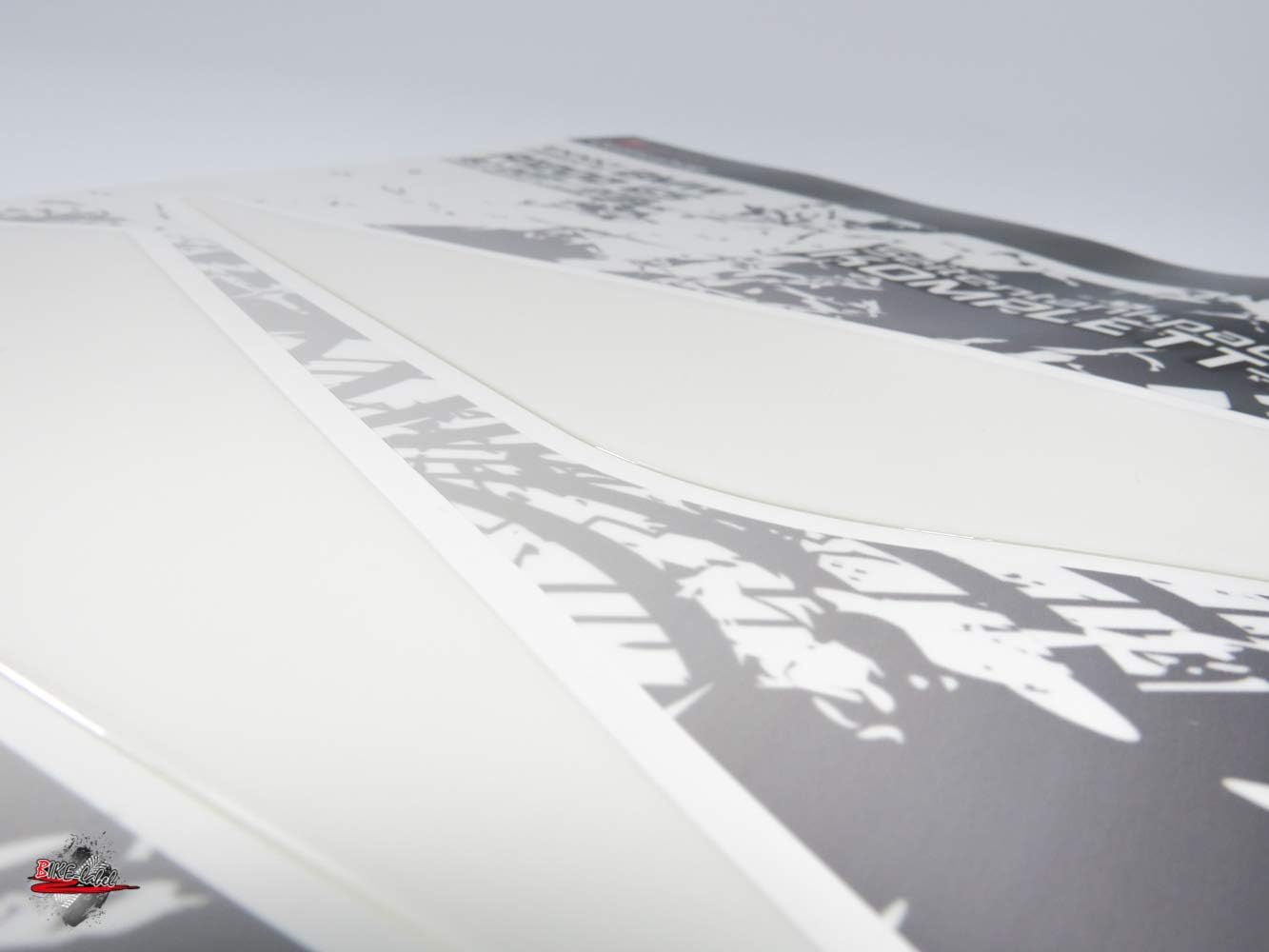 - Grösse: je Seite ca. 241 x 84 mm (Set für linke und rechte Tank Seite) Materialstärke: ca. 1 - 2 mm (bezogen auf die Anordnung wie im Bild)