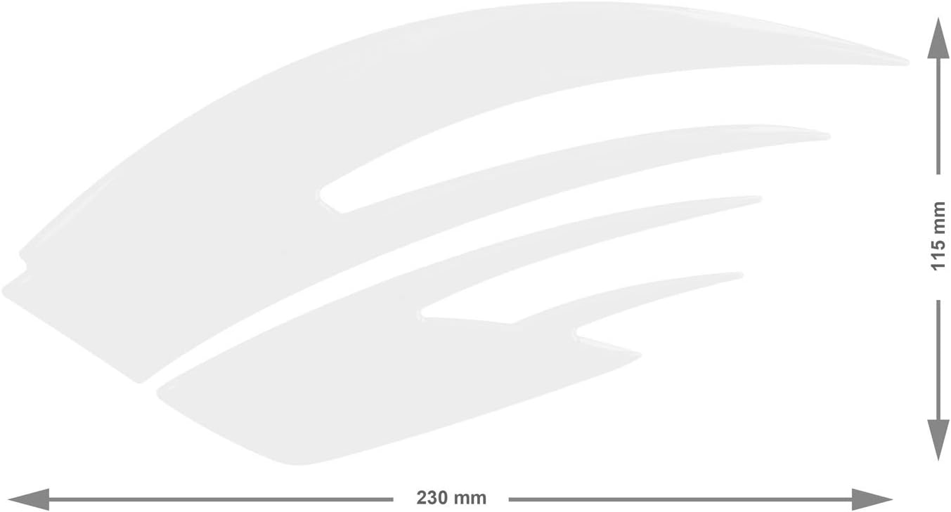 • Grösse: je Seite ca 230 x 115 mm (Set für linke und rechte Tank Seite) Materialstärke: ca. 1 - 2 mm (bezogen auf die Anordnung wie im Bild)