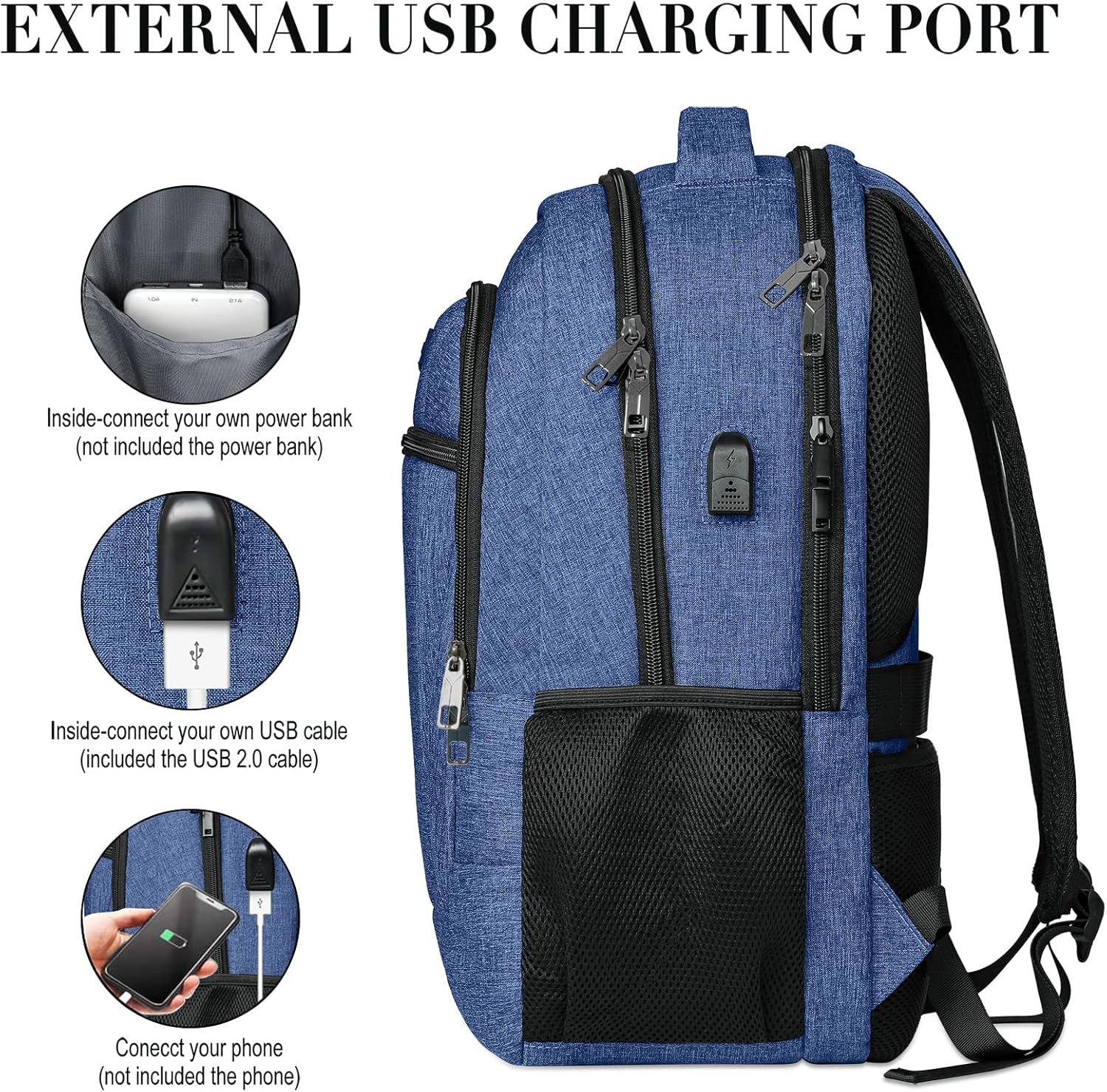 - USB-PORT & ANTI DIEBSTAHL: Mit versteckten Gesässtaschen bietet unser anti-diebstahl rucksack herren privaten Platz und schützt Ihre Wertsachen vor Dieben.Der integrierte USB-Anschluss ist praktisch, um Ihr Handy über die angeschlossene Powerbank