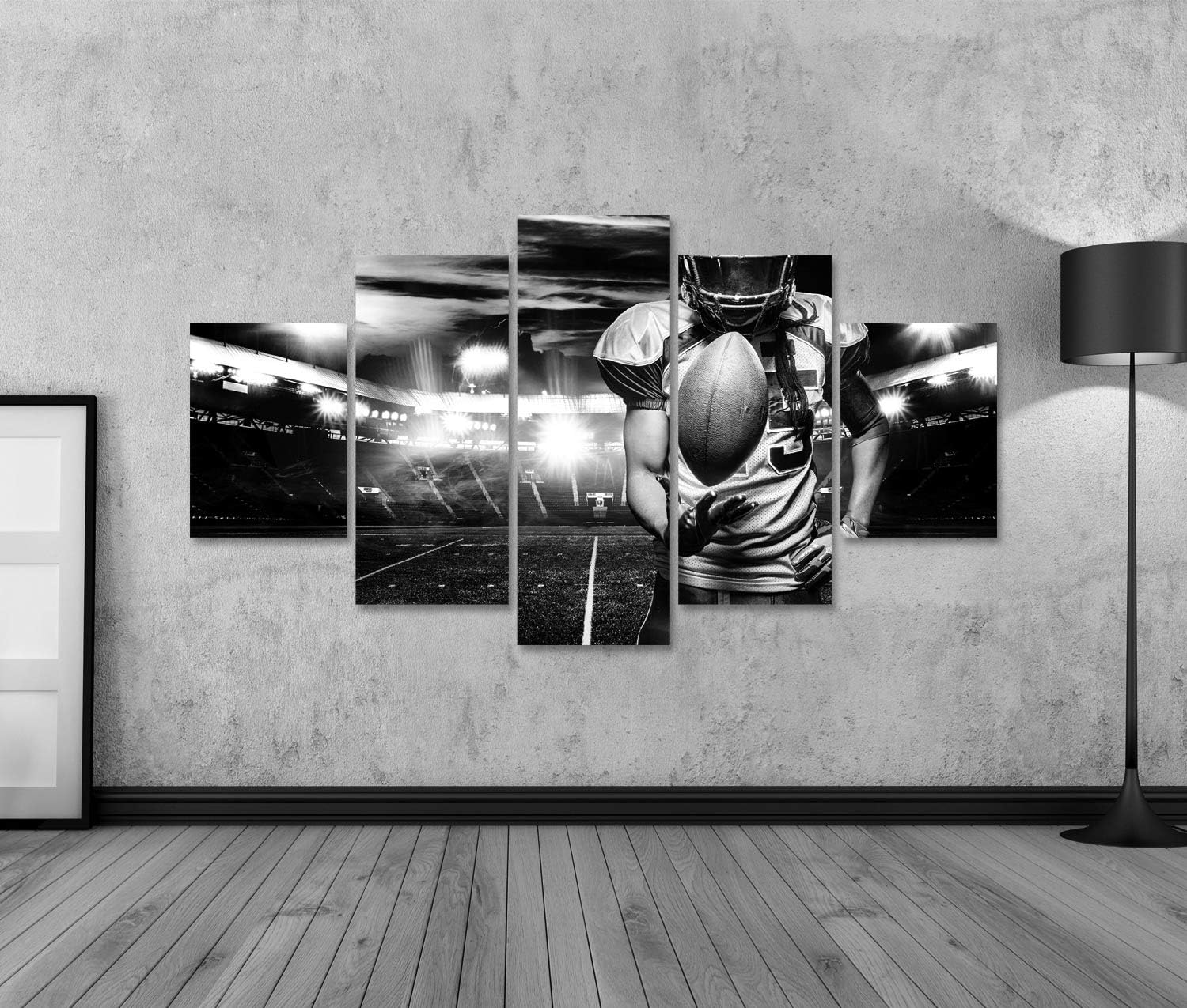 islandburner Bild auf Leinwand American Football Spieler Helm Mit Ball Im Stadion Schwarz Weiss Bild