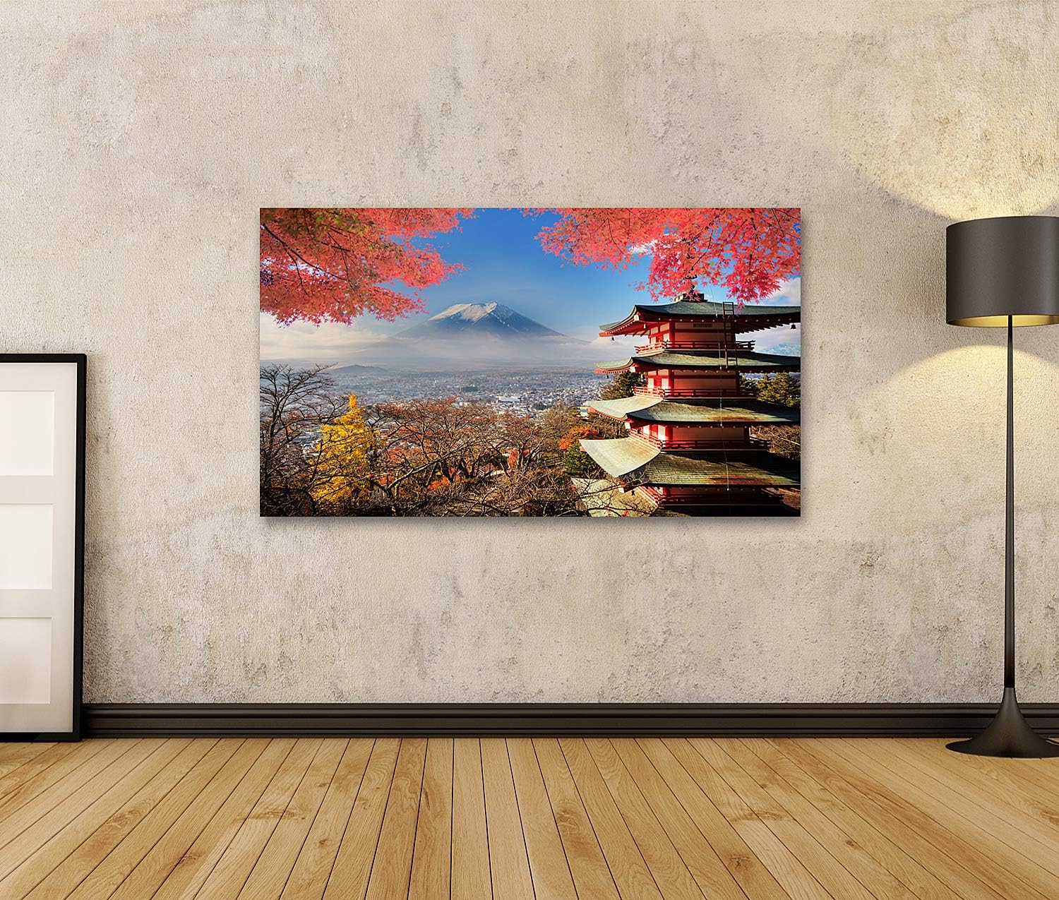 islandburner Bild auf Leinwand Berg Fuji Herbstfarben Japan Bilder Wandbilder Poster Leinwand 100x57